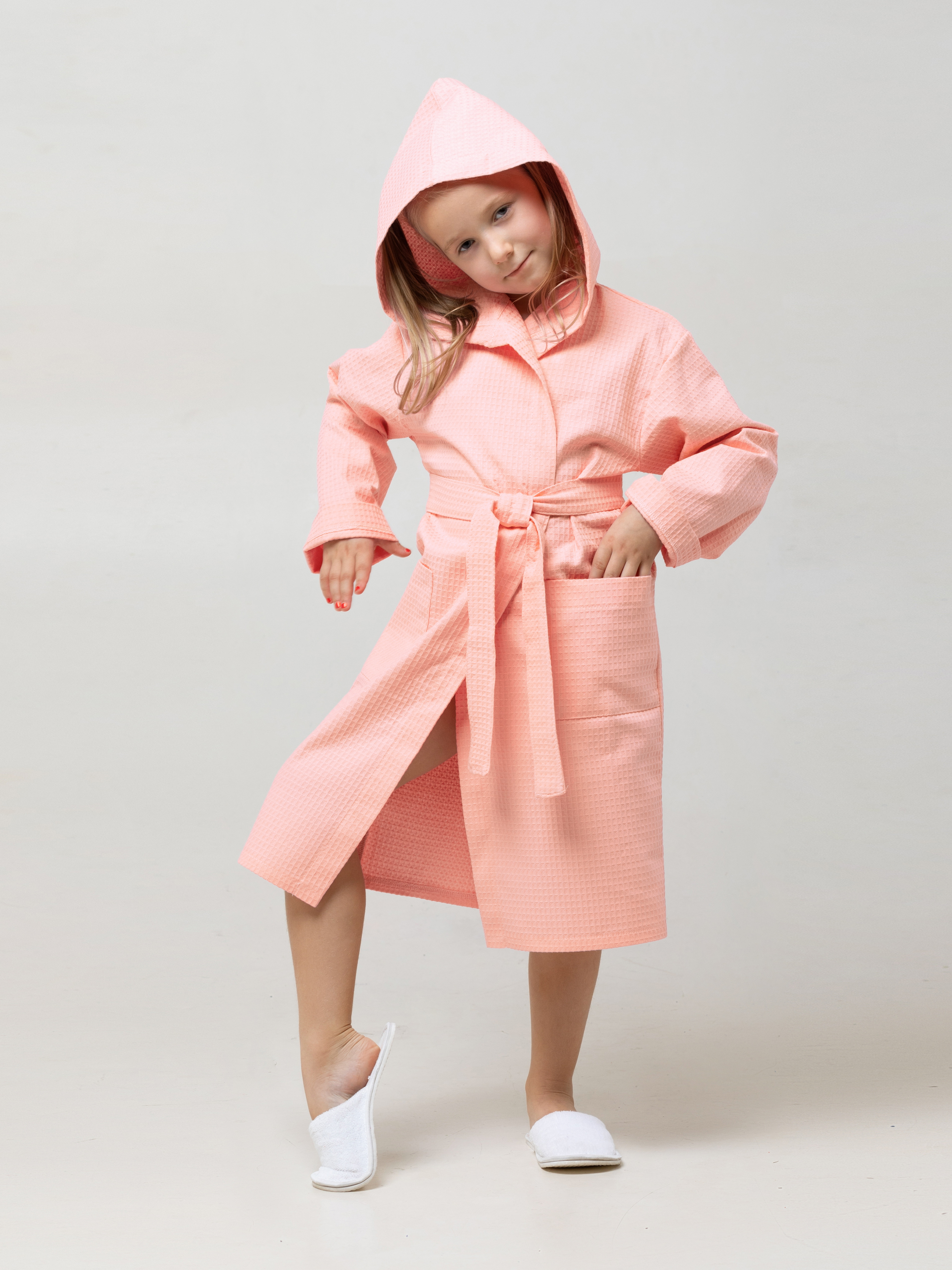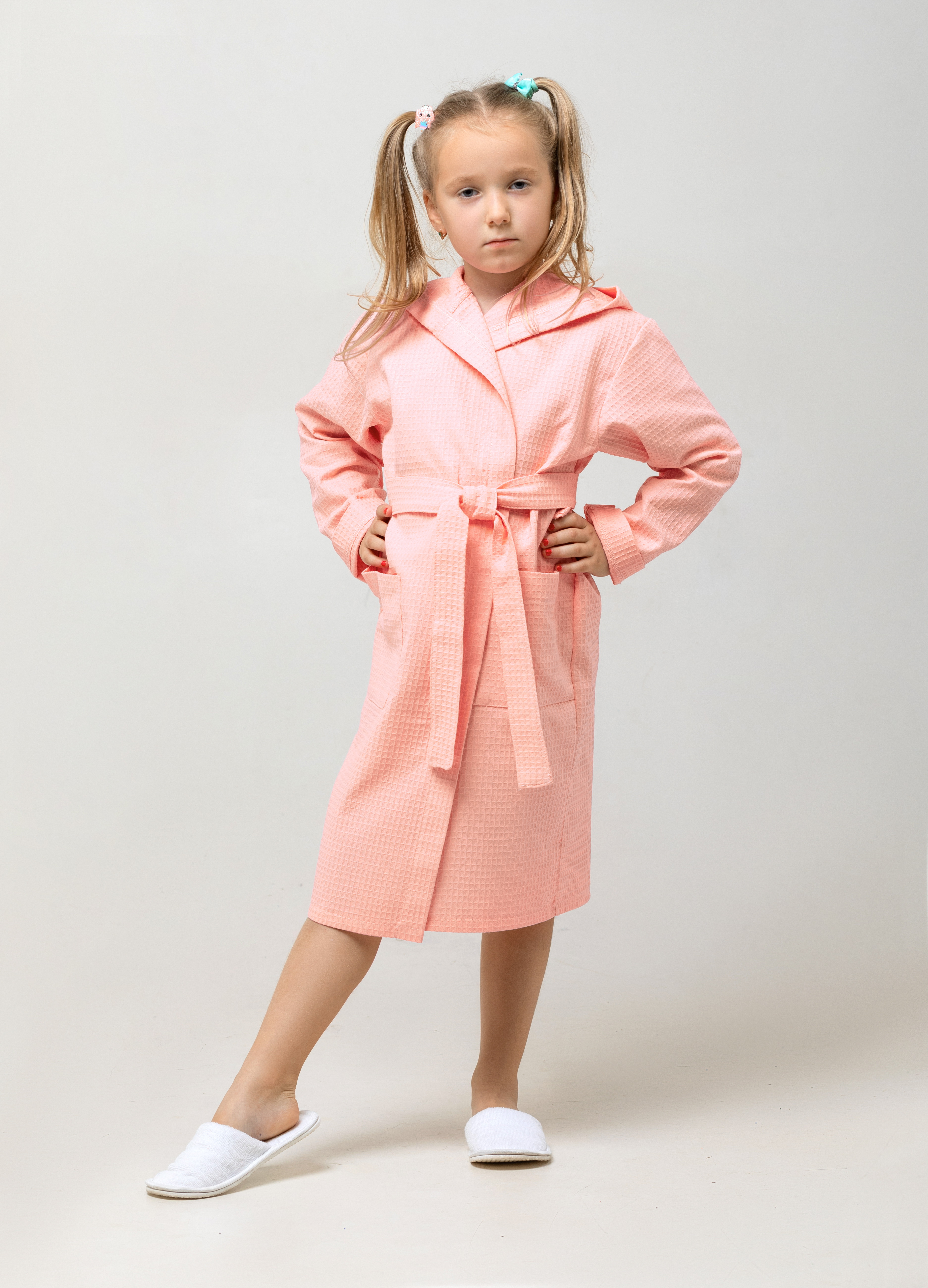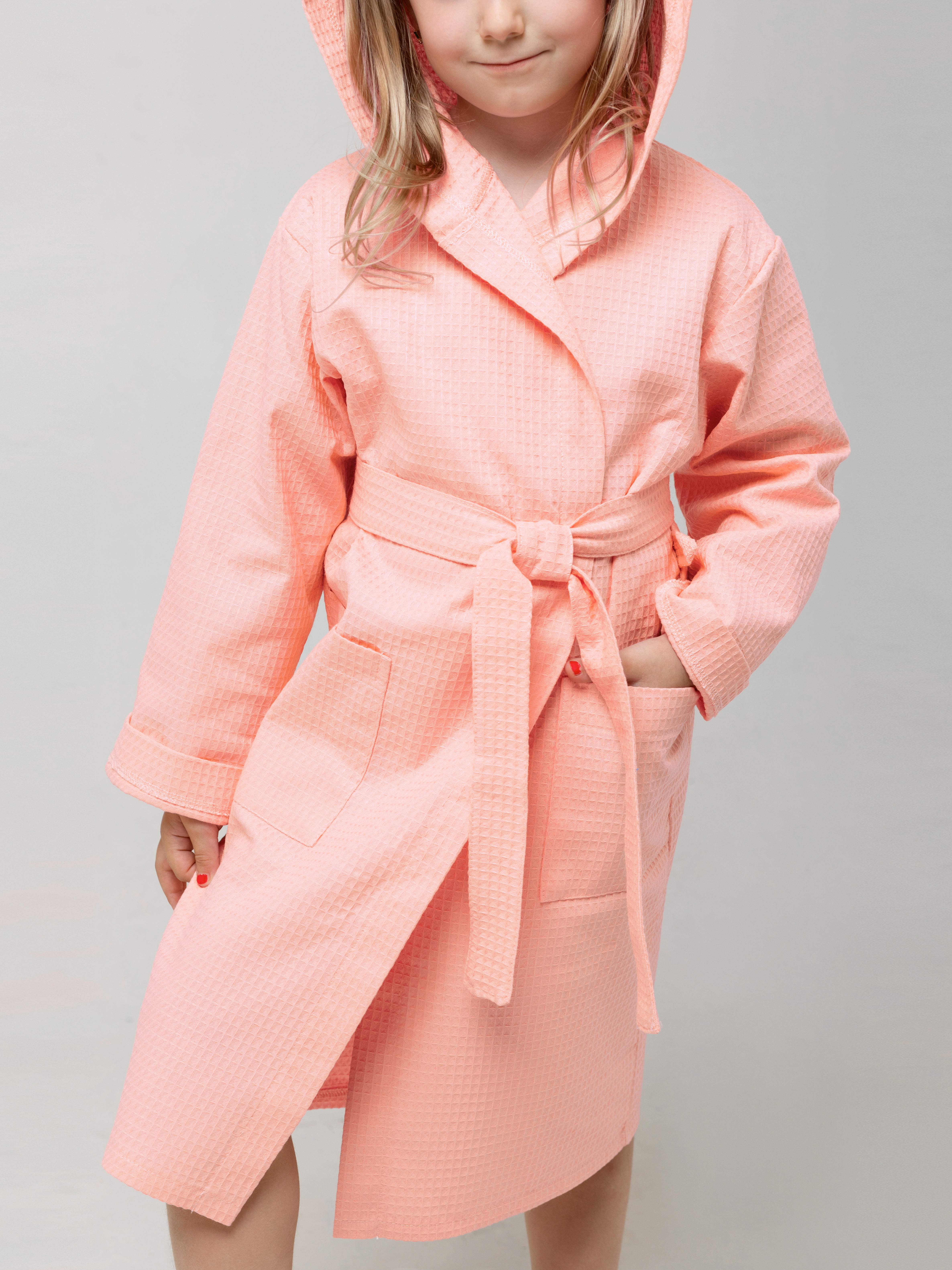 • Детский вафельный халат с капюшоном коралловый В-07 (7)