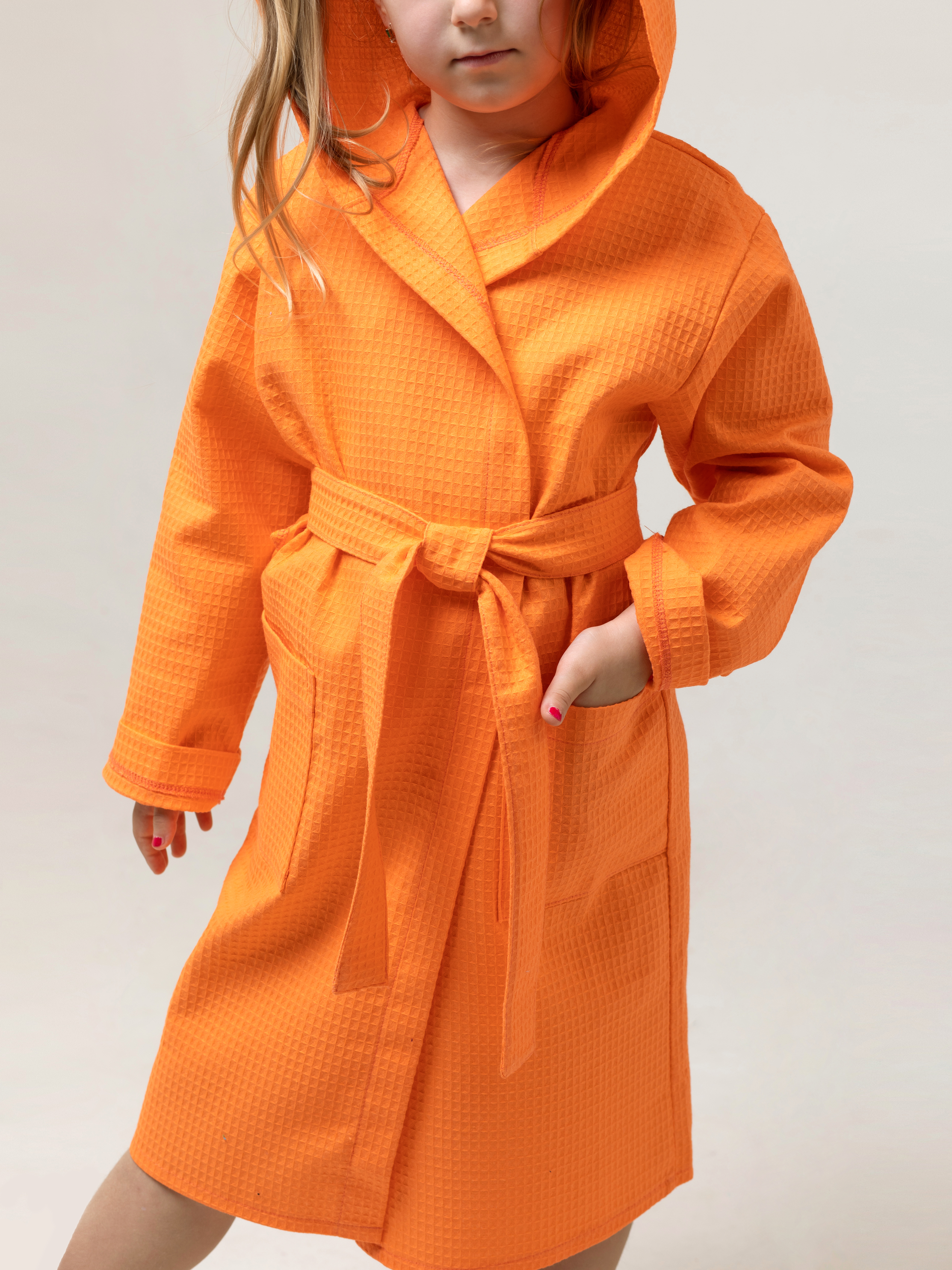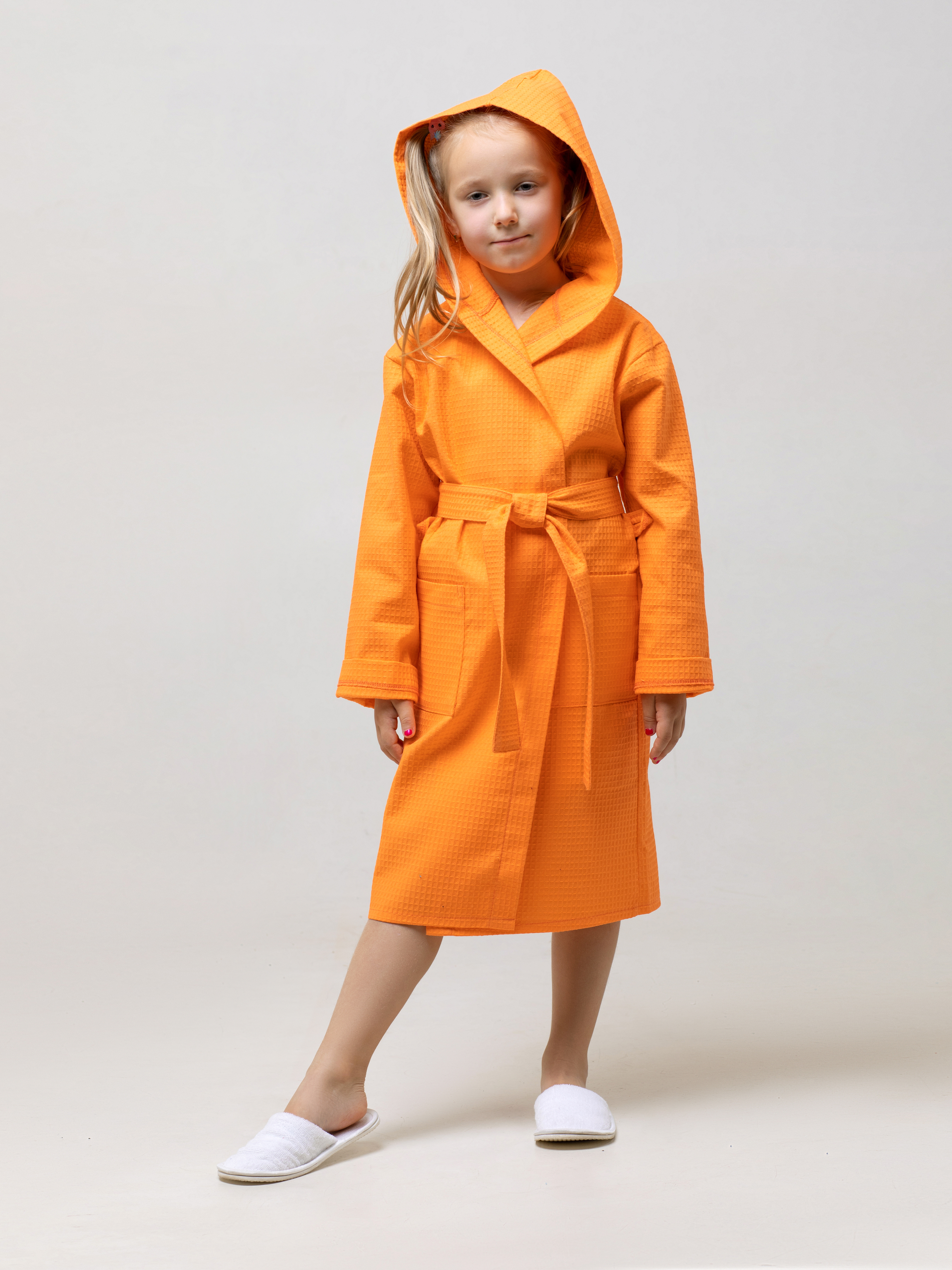 Теги: Детский вафельный халат с капюшоном оранжевый