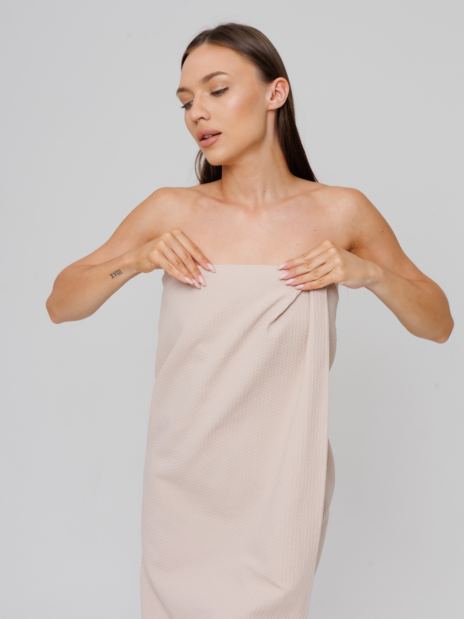 Теги: Однотонное вафельное полотенце "Ромбы" бежевый