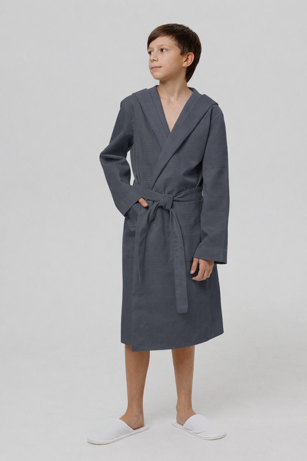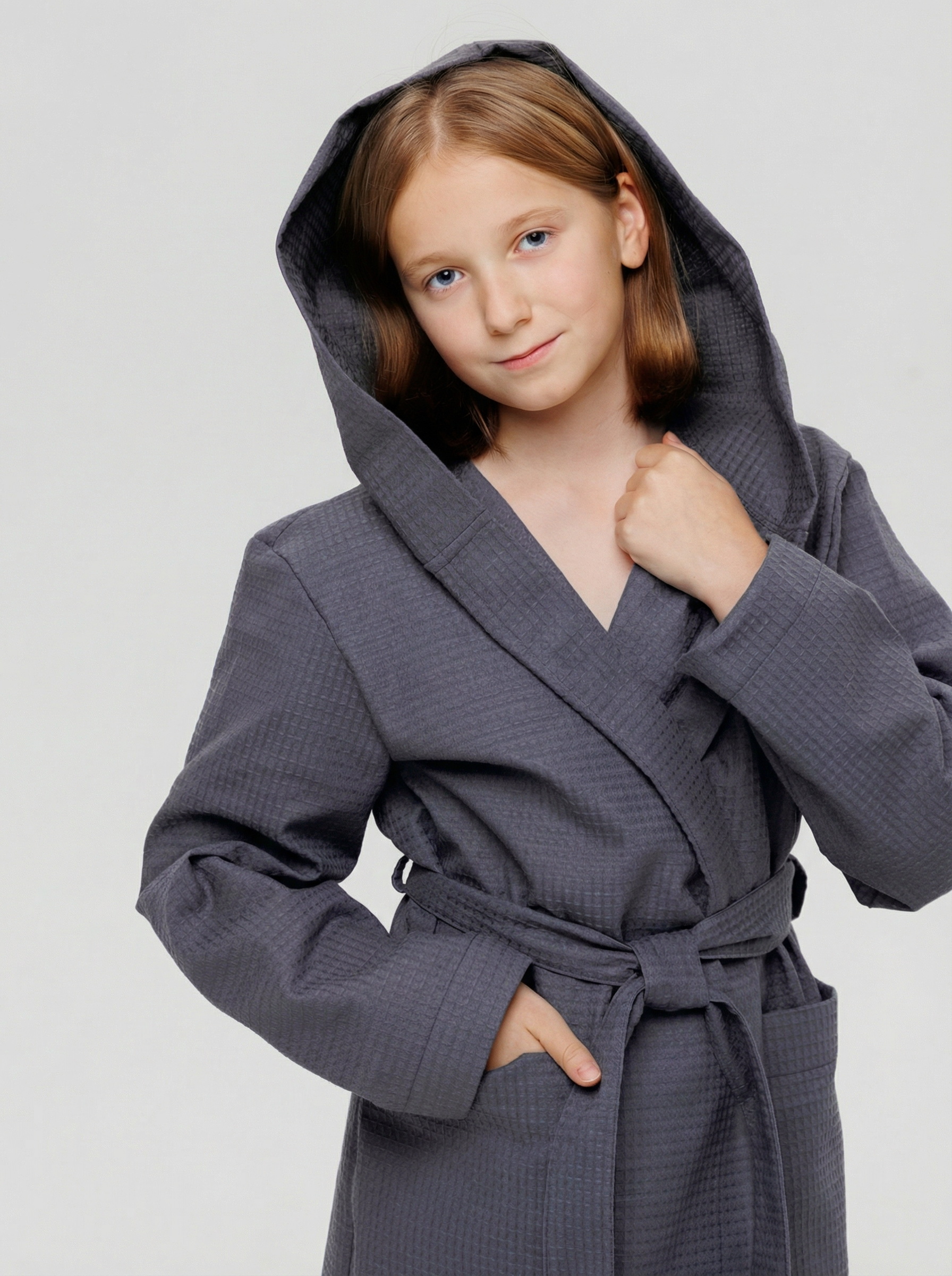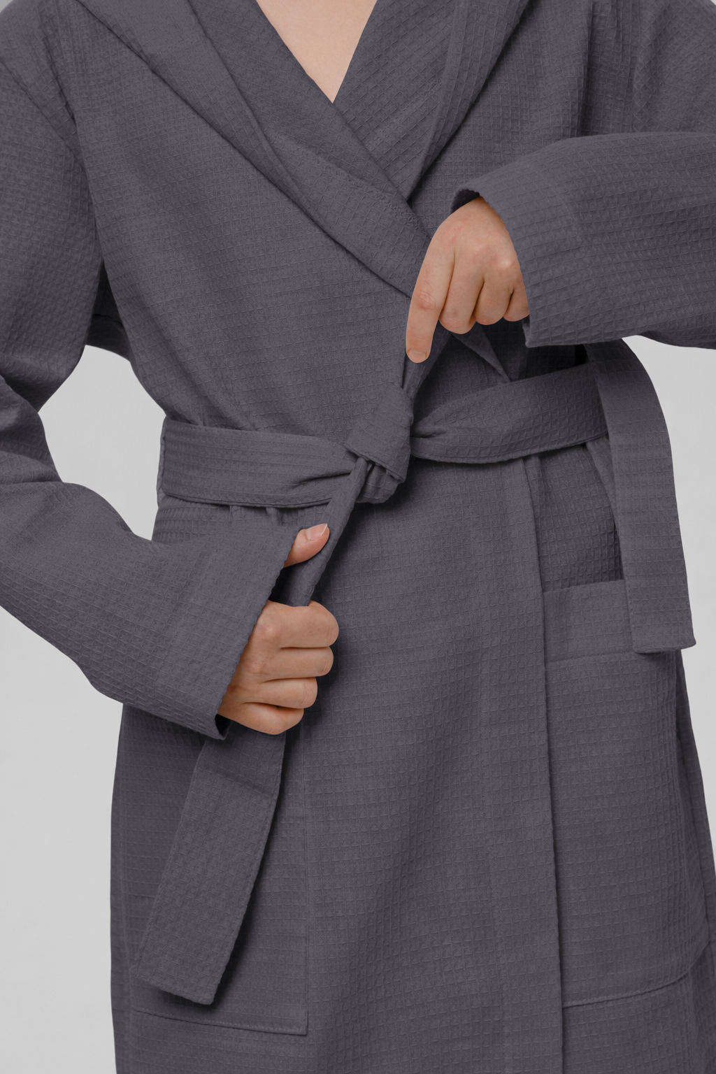 Теги: Подростковый вафельный халат с капюшоном темно-серый