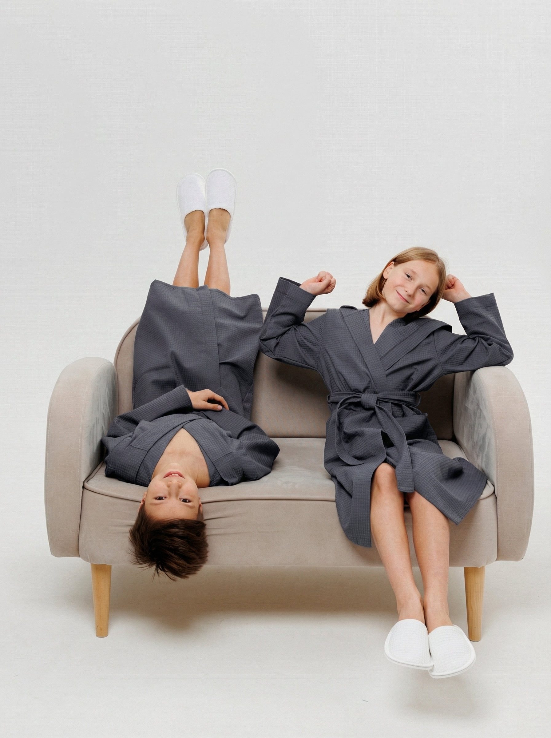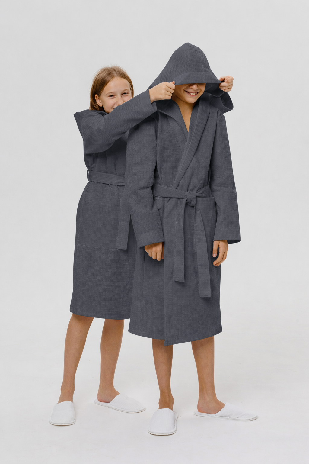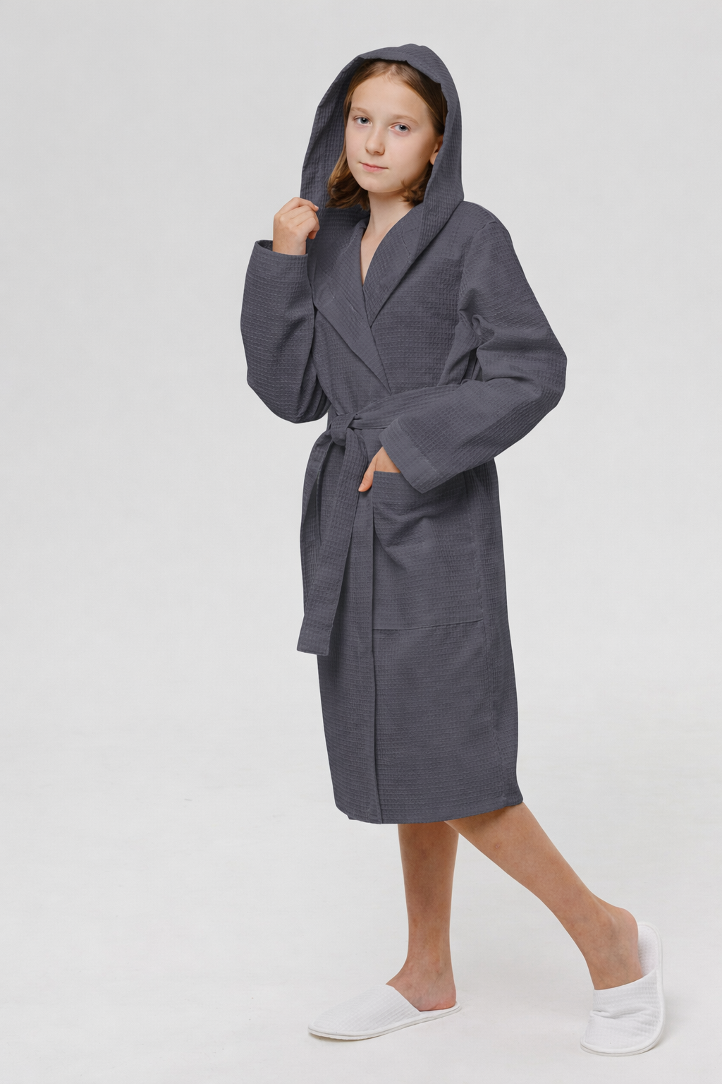 Теги: Подростковый вафельный халат с капюшоном темно-серый