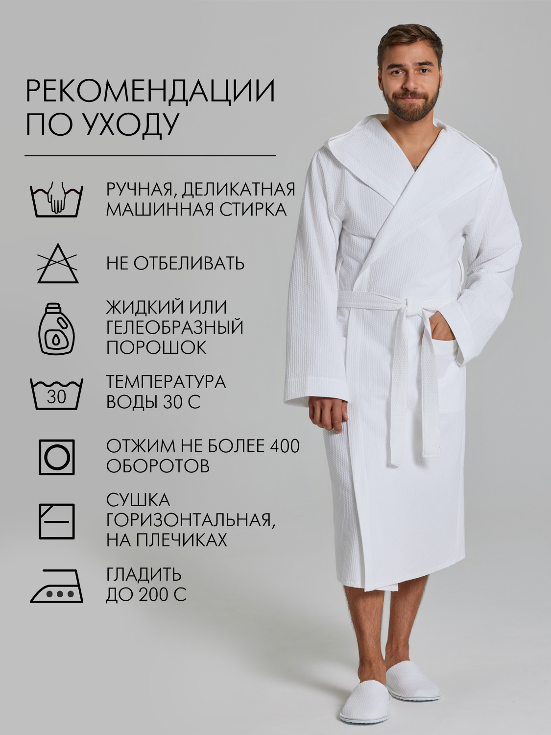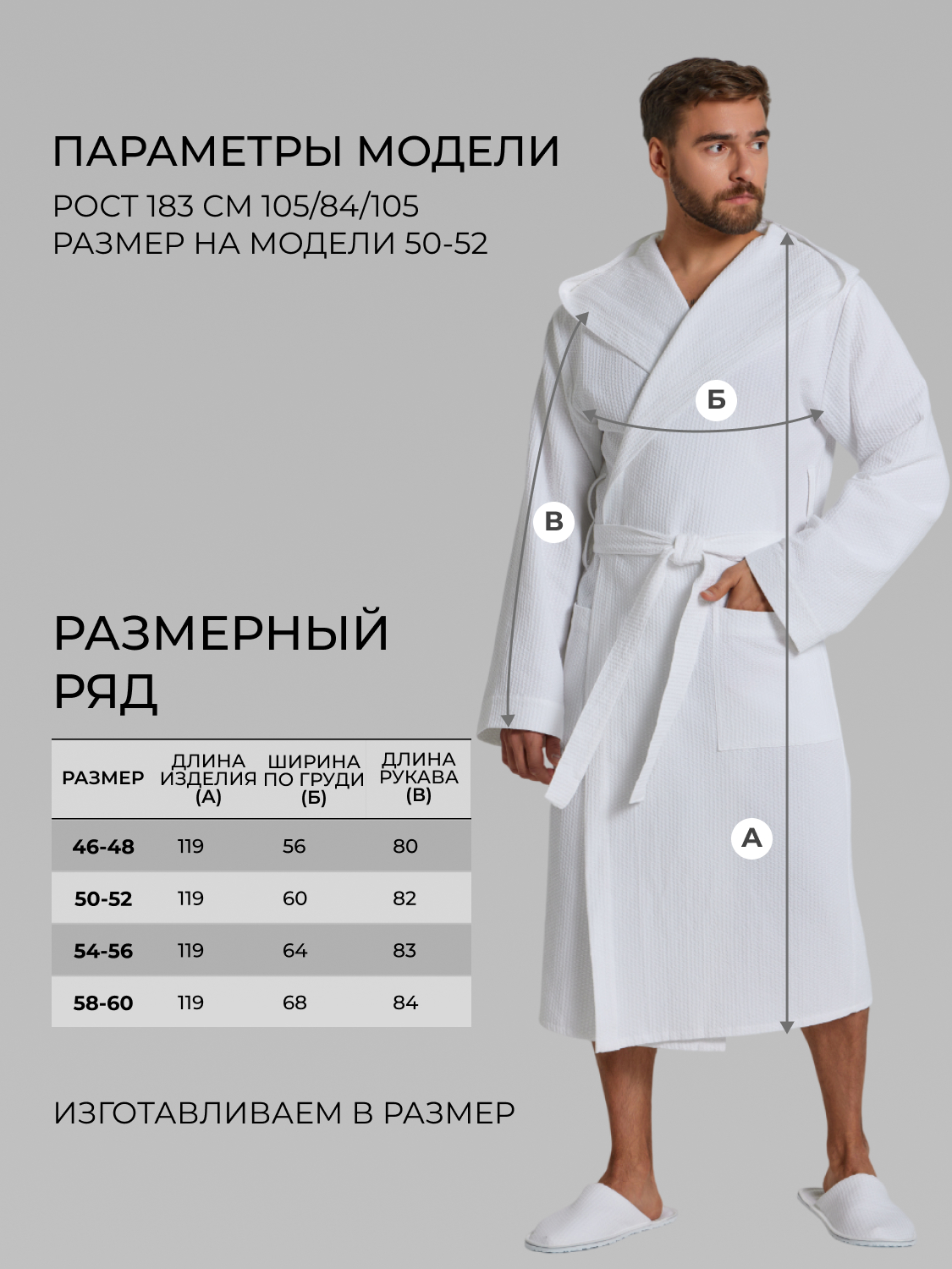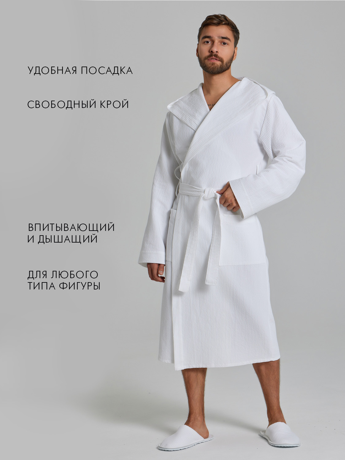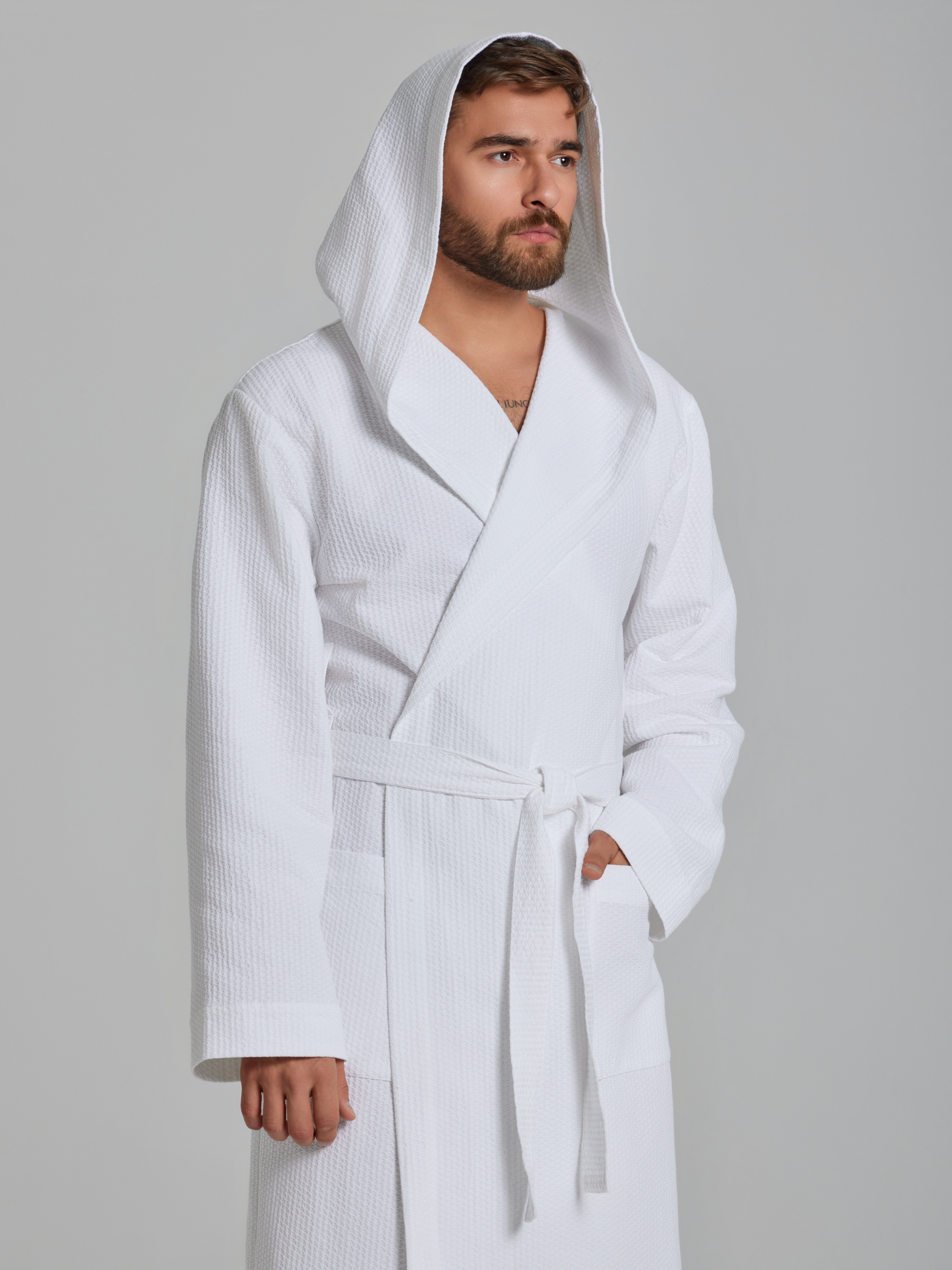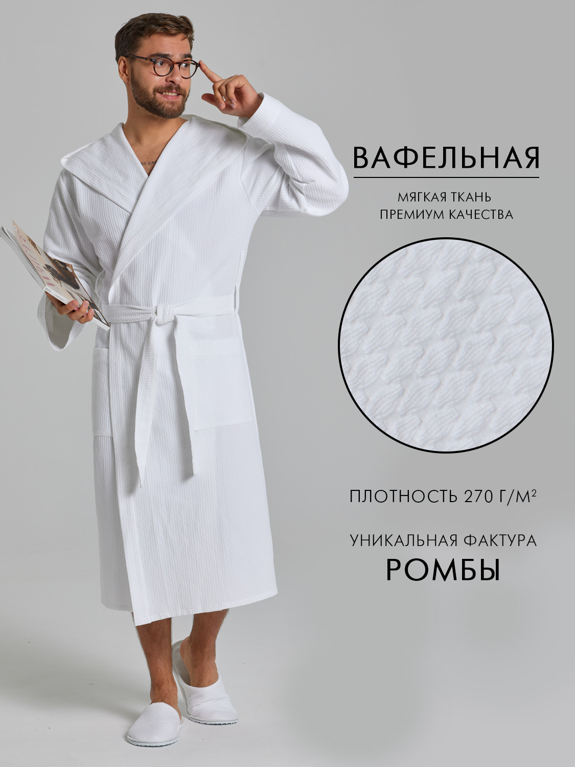 Теги: Мужской вафельный халат с капюшоном "Ромбы" белый