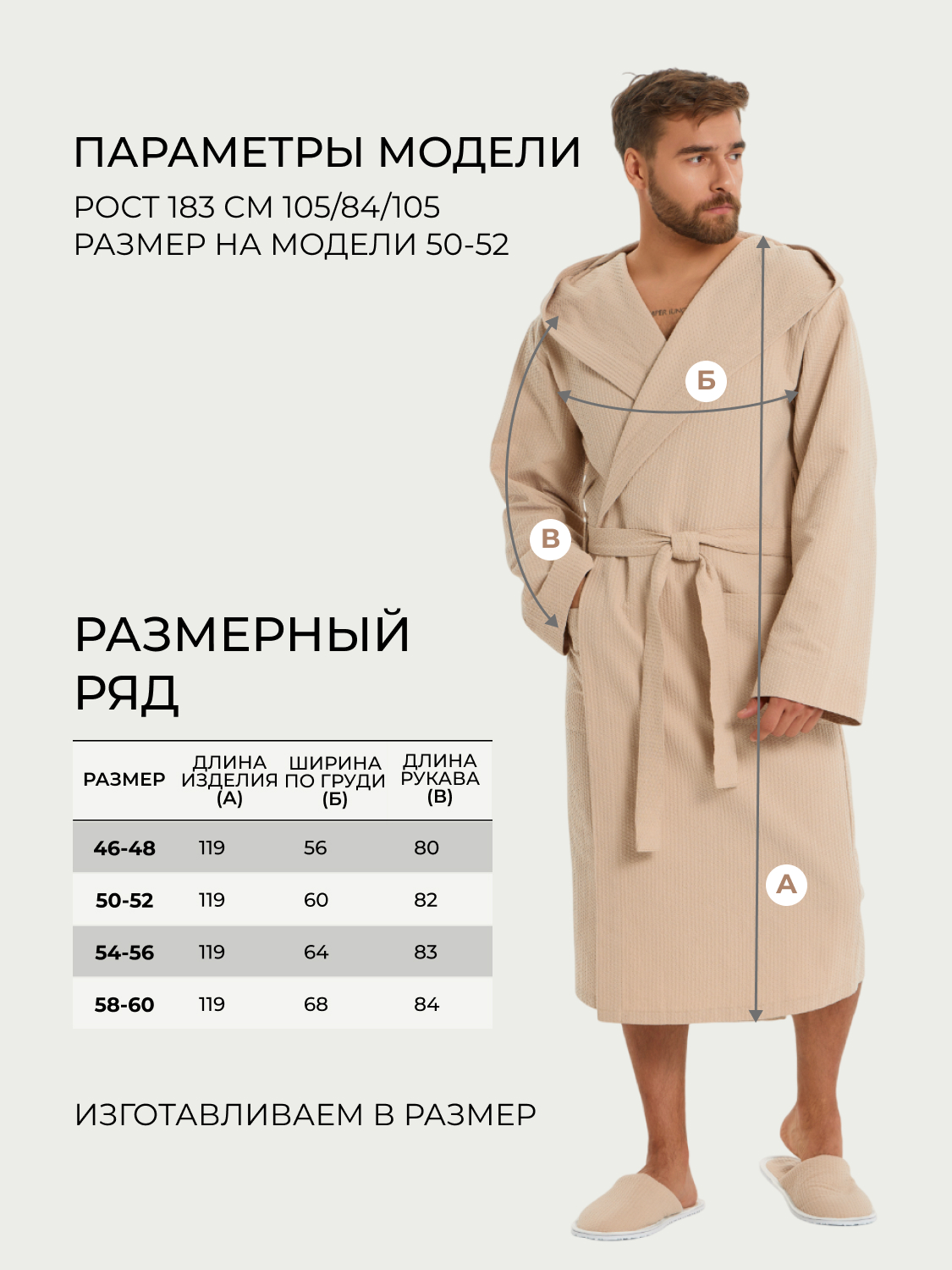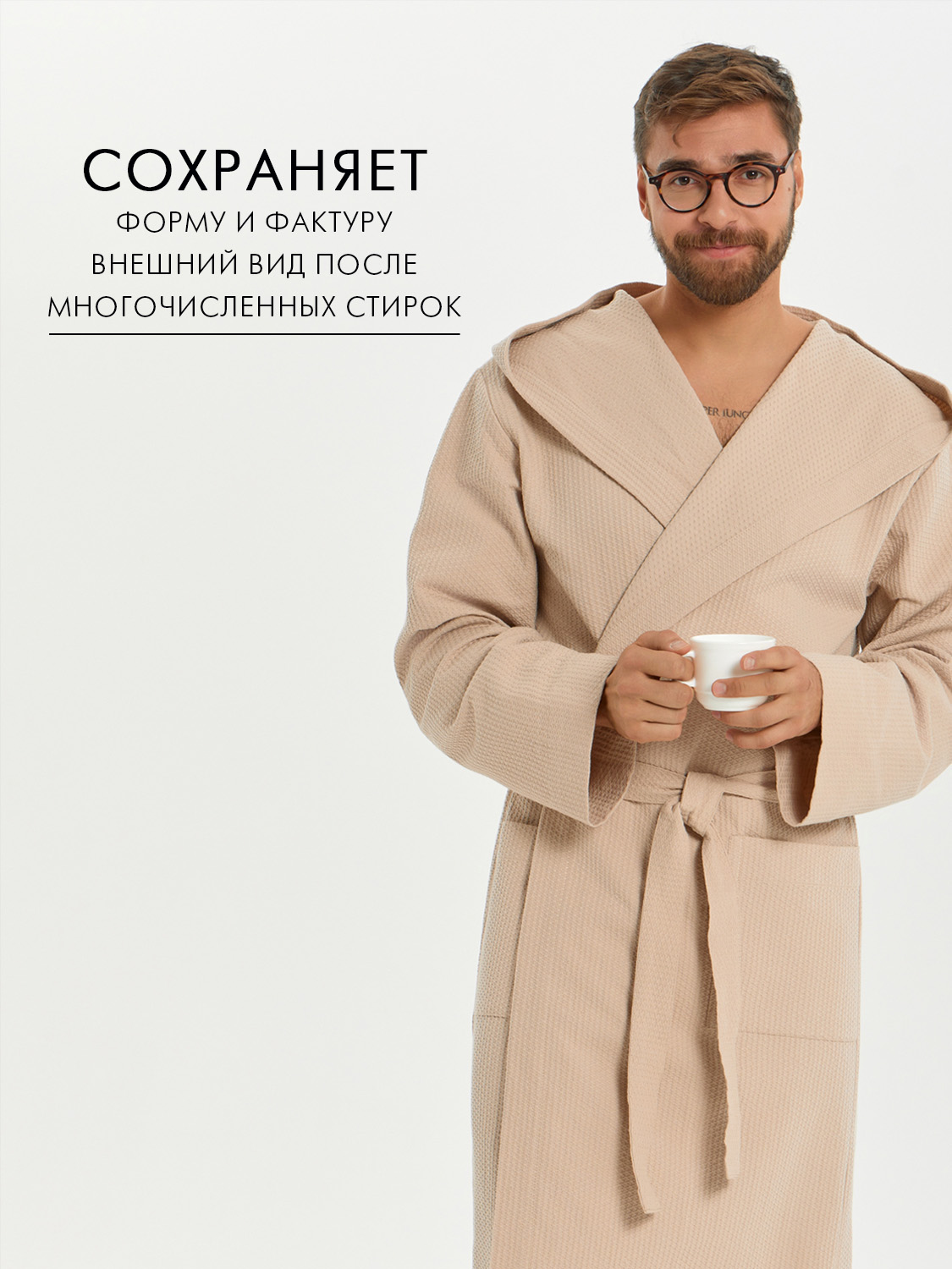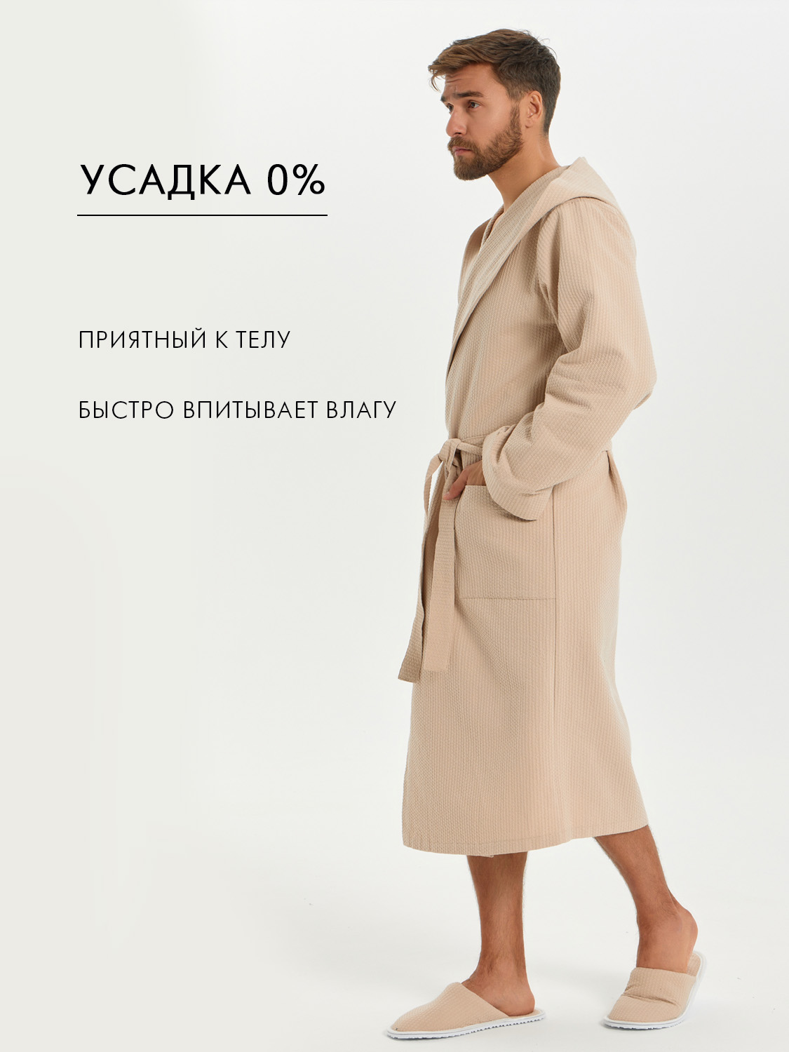 Теги: Мужской вафельный халат с капюшоном "Ромбы" бежевый