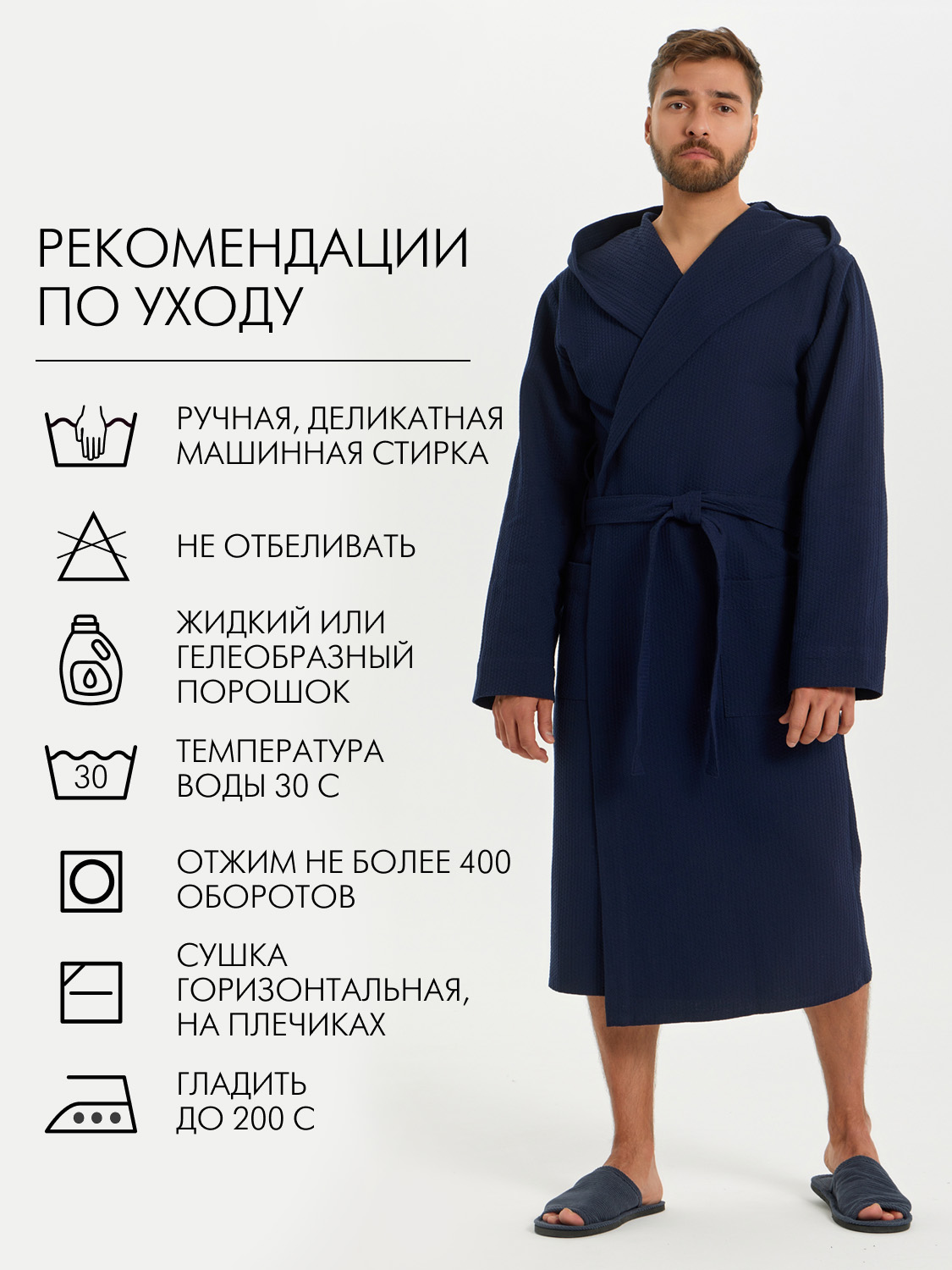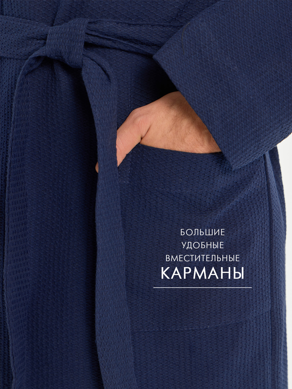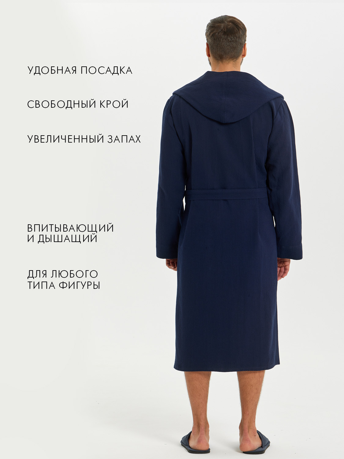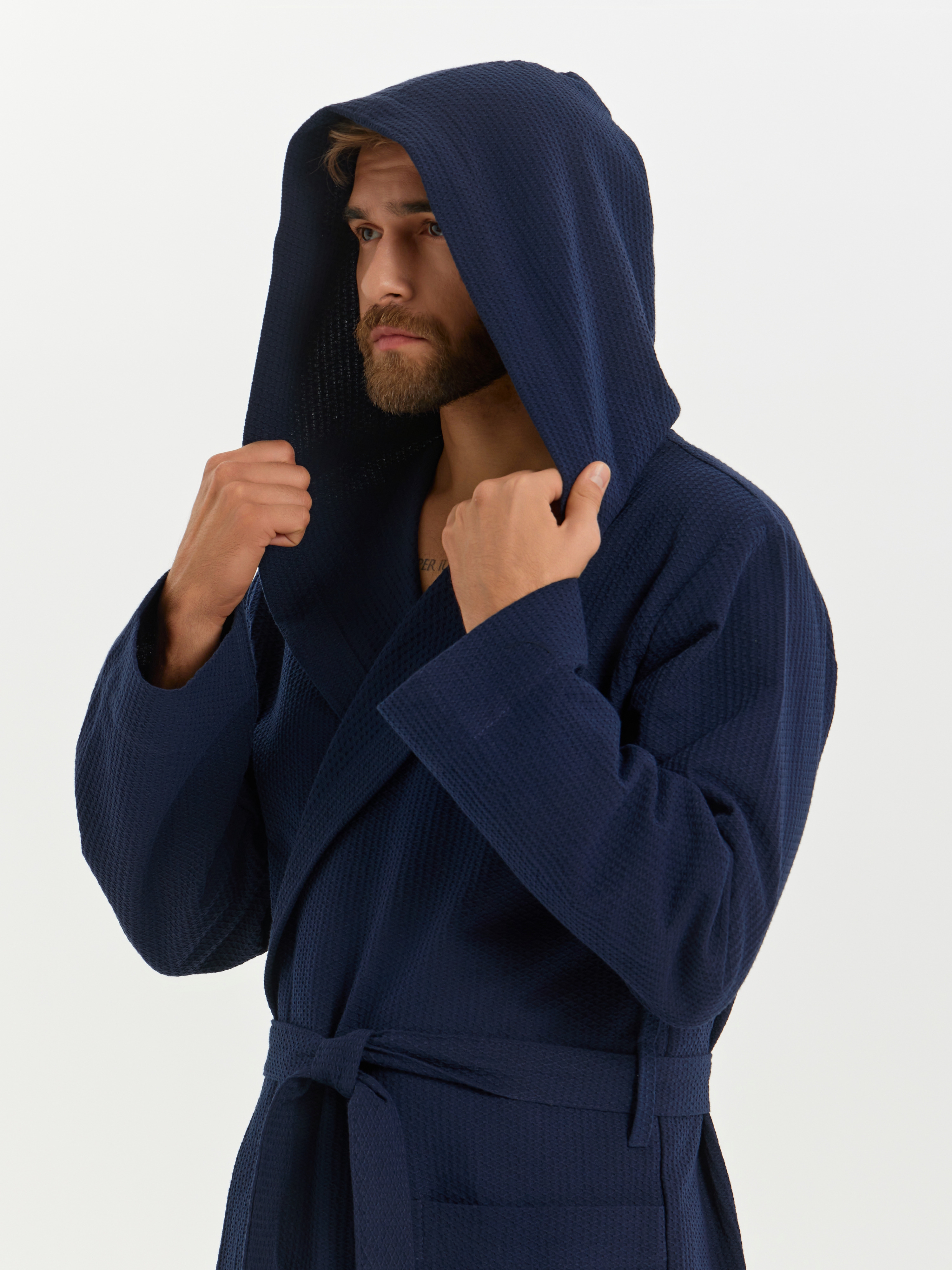Теги: Мужской вафельный халат с капюшоном "Ромбы" темно-синий