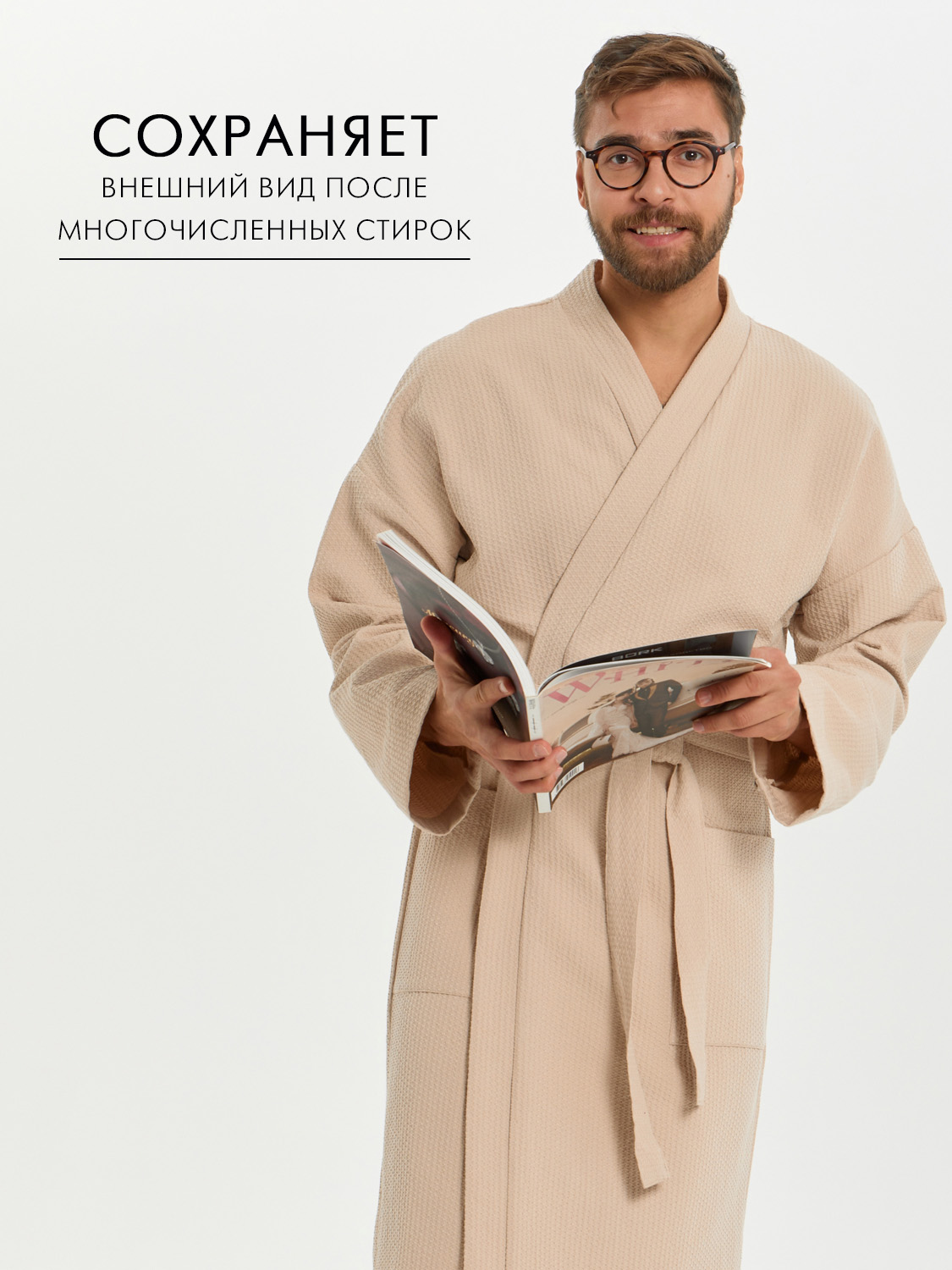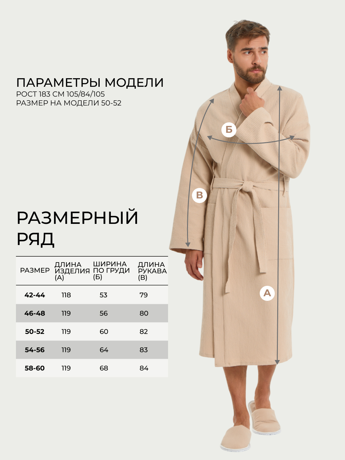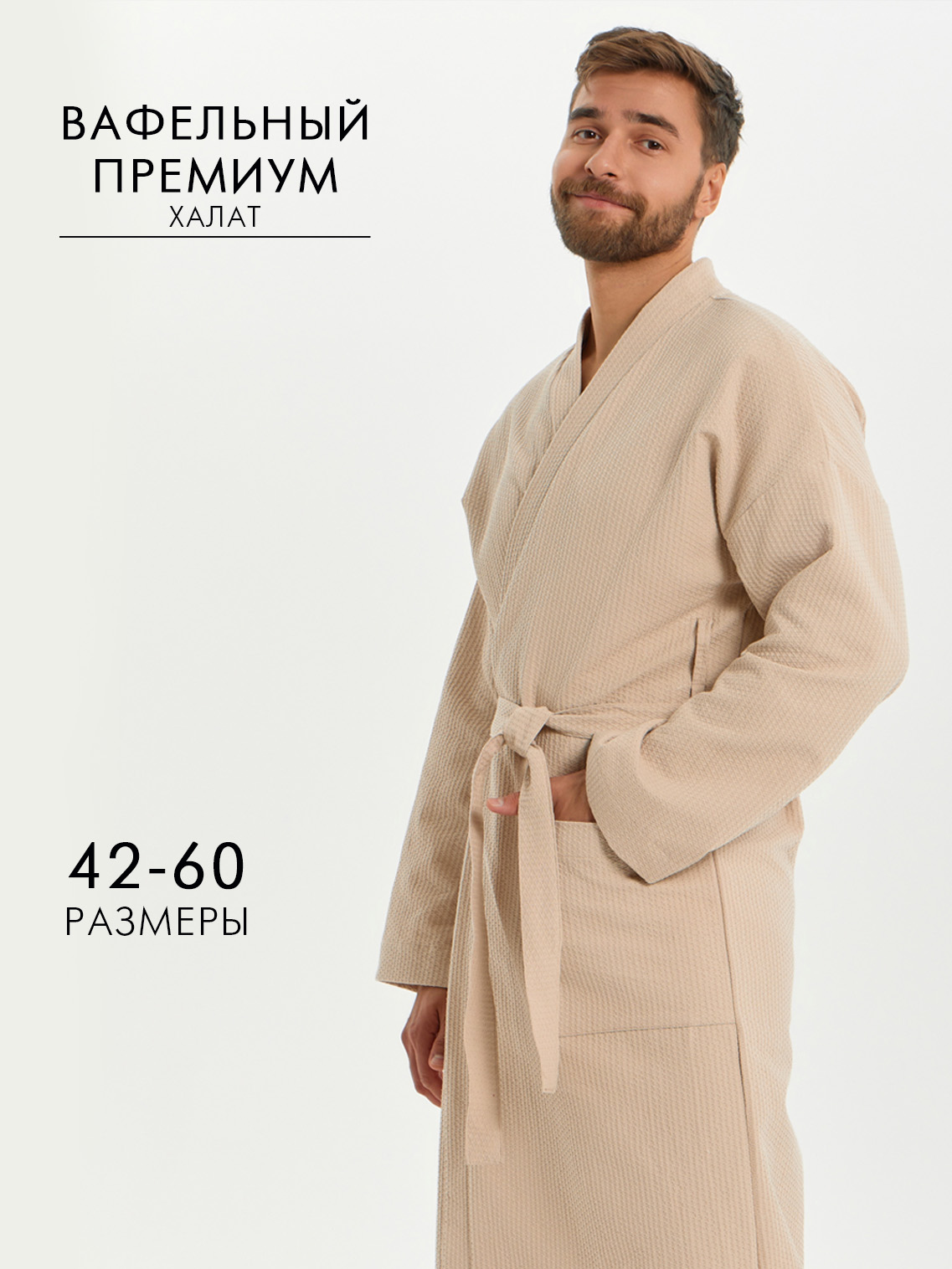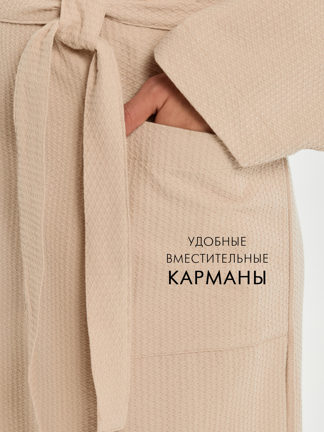 Теги: Вафельный удлиненный халат Кимоно унисекс "Ромбы" бежевый