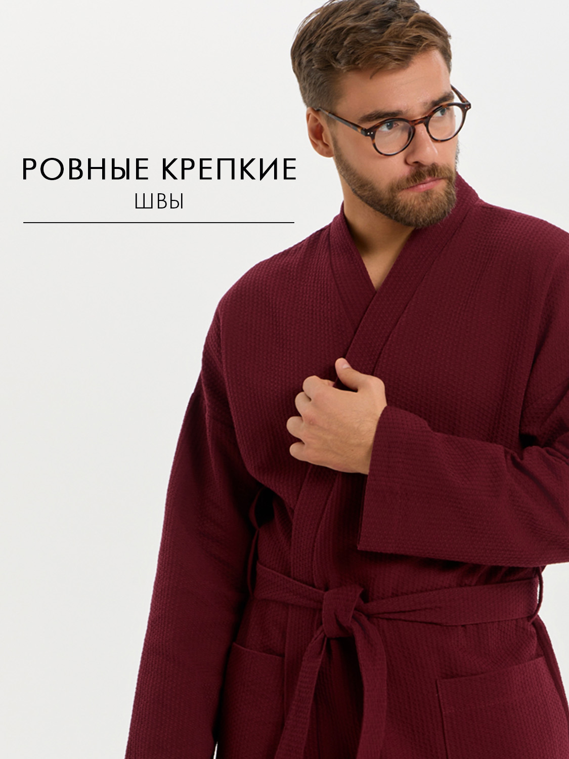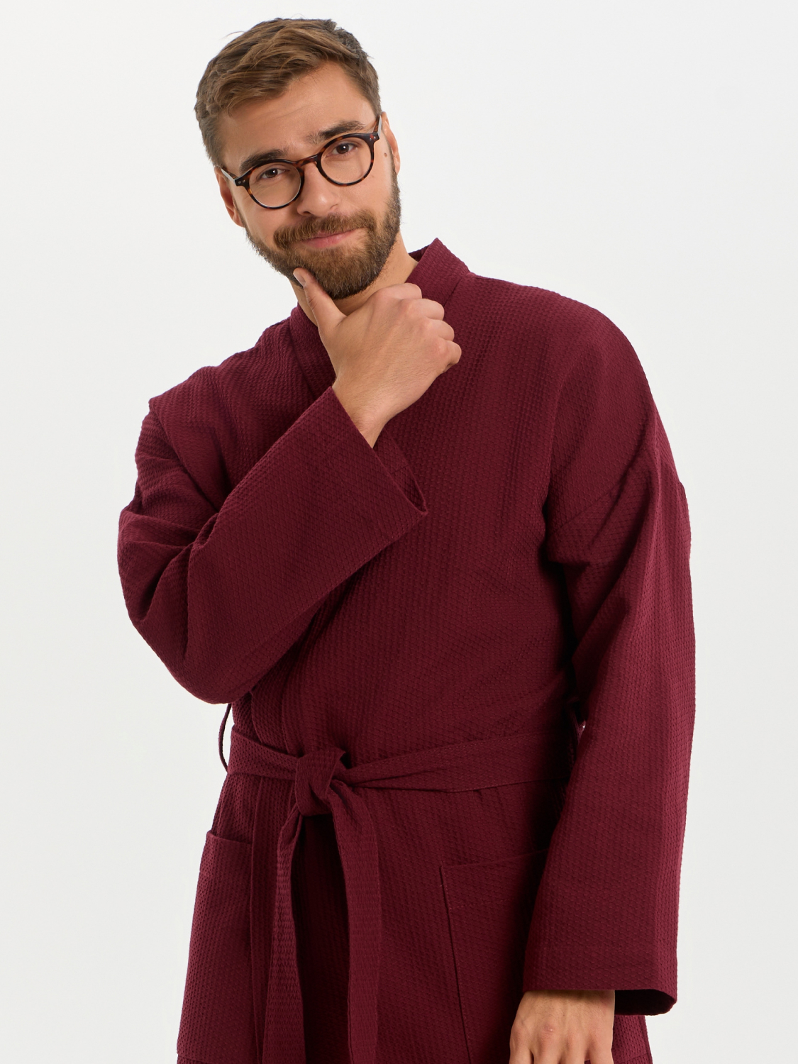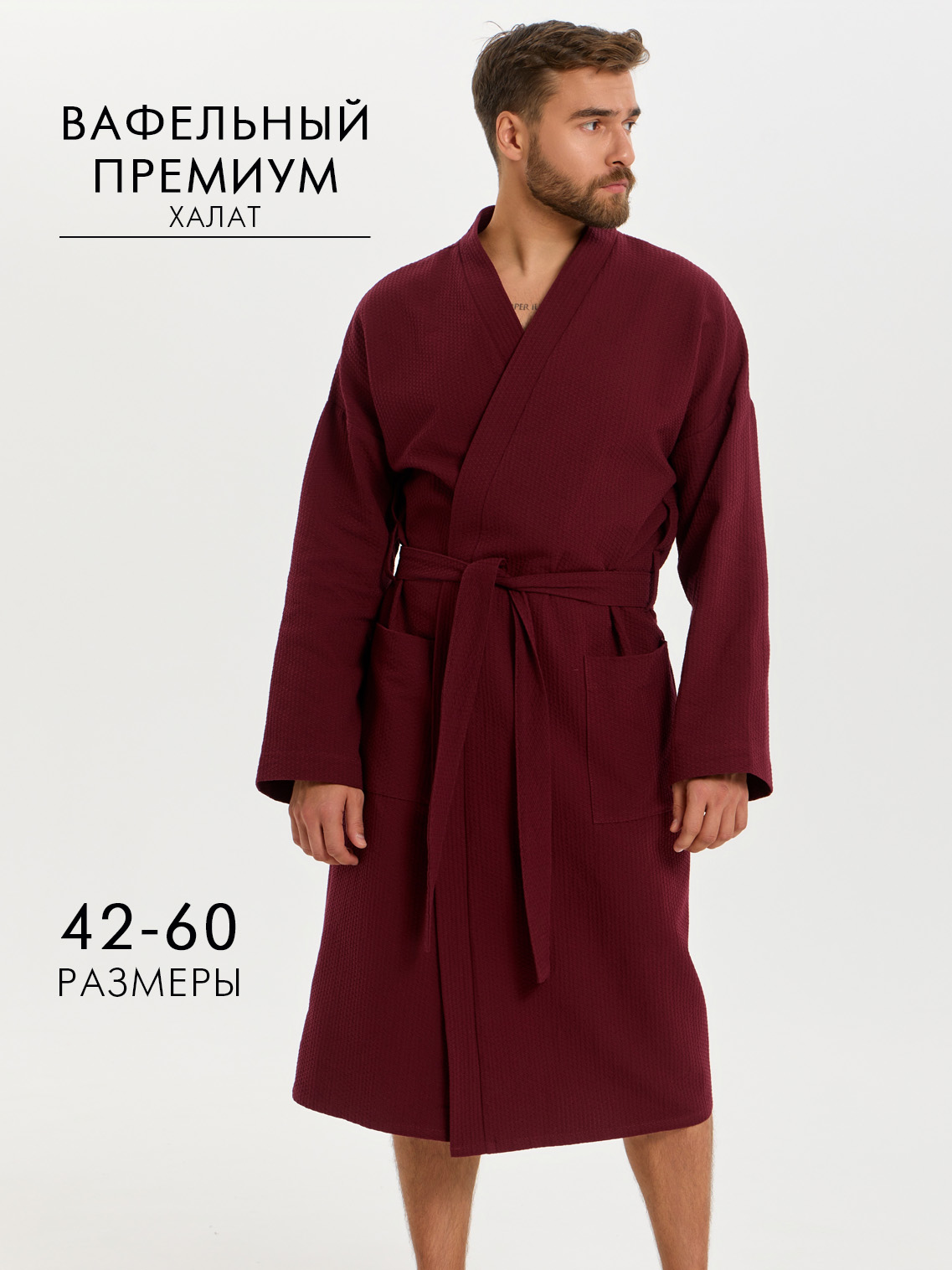 Теги: Вафельный удлиненный халат Кимоно унисекс "Ромбы" бордовый