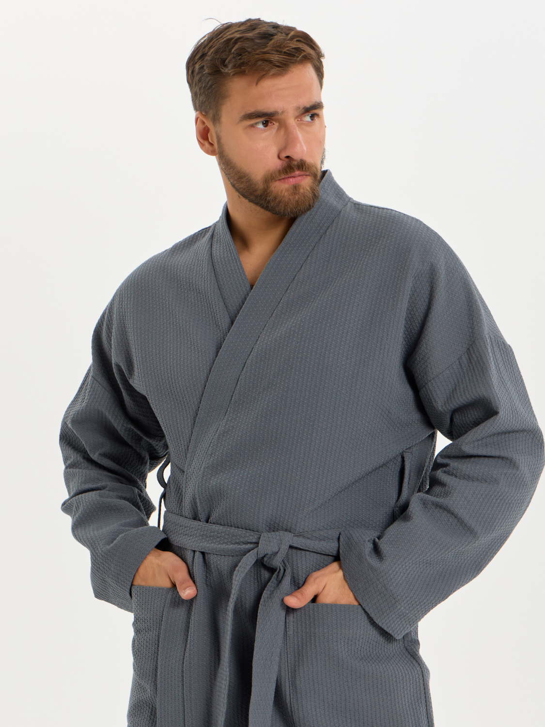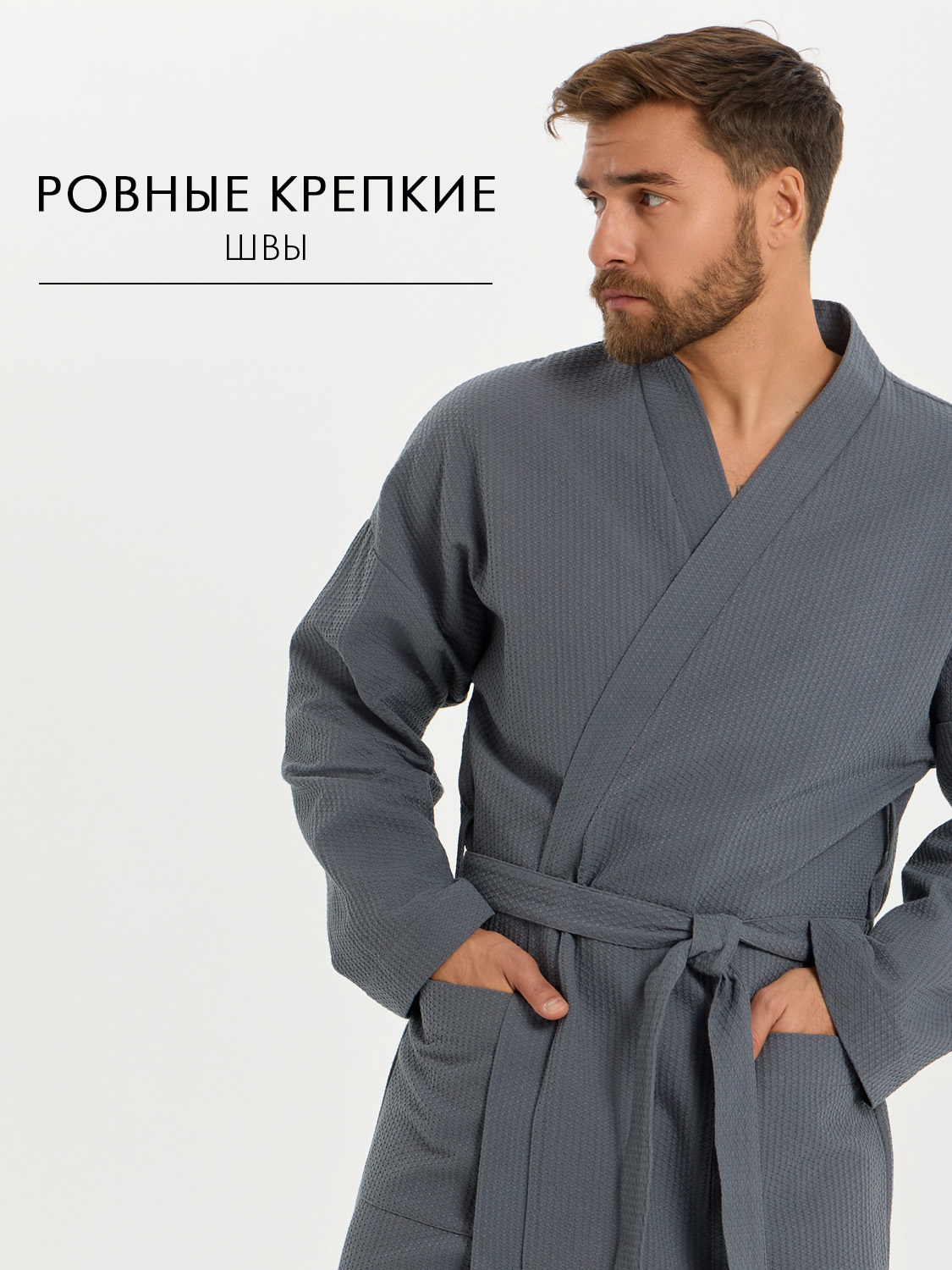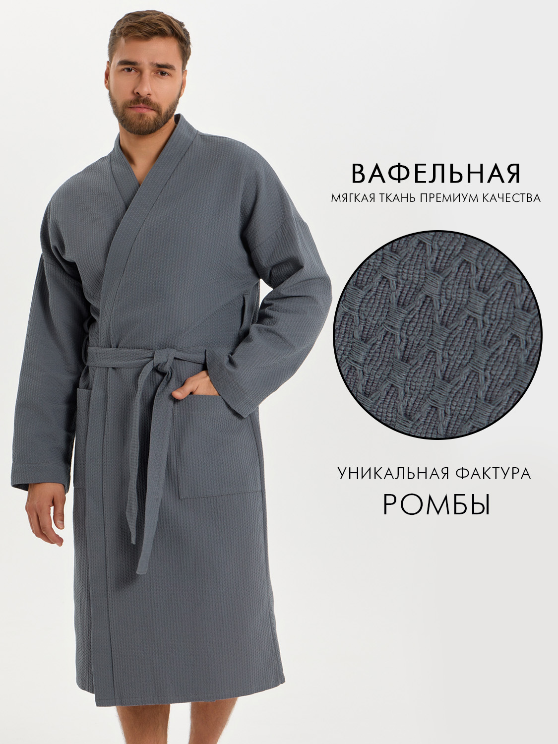 Теги: Вафельный удлиненный халат Кимоно унисекс "Ромбы" темно-серый