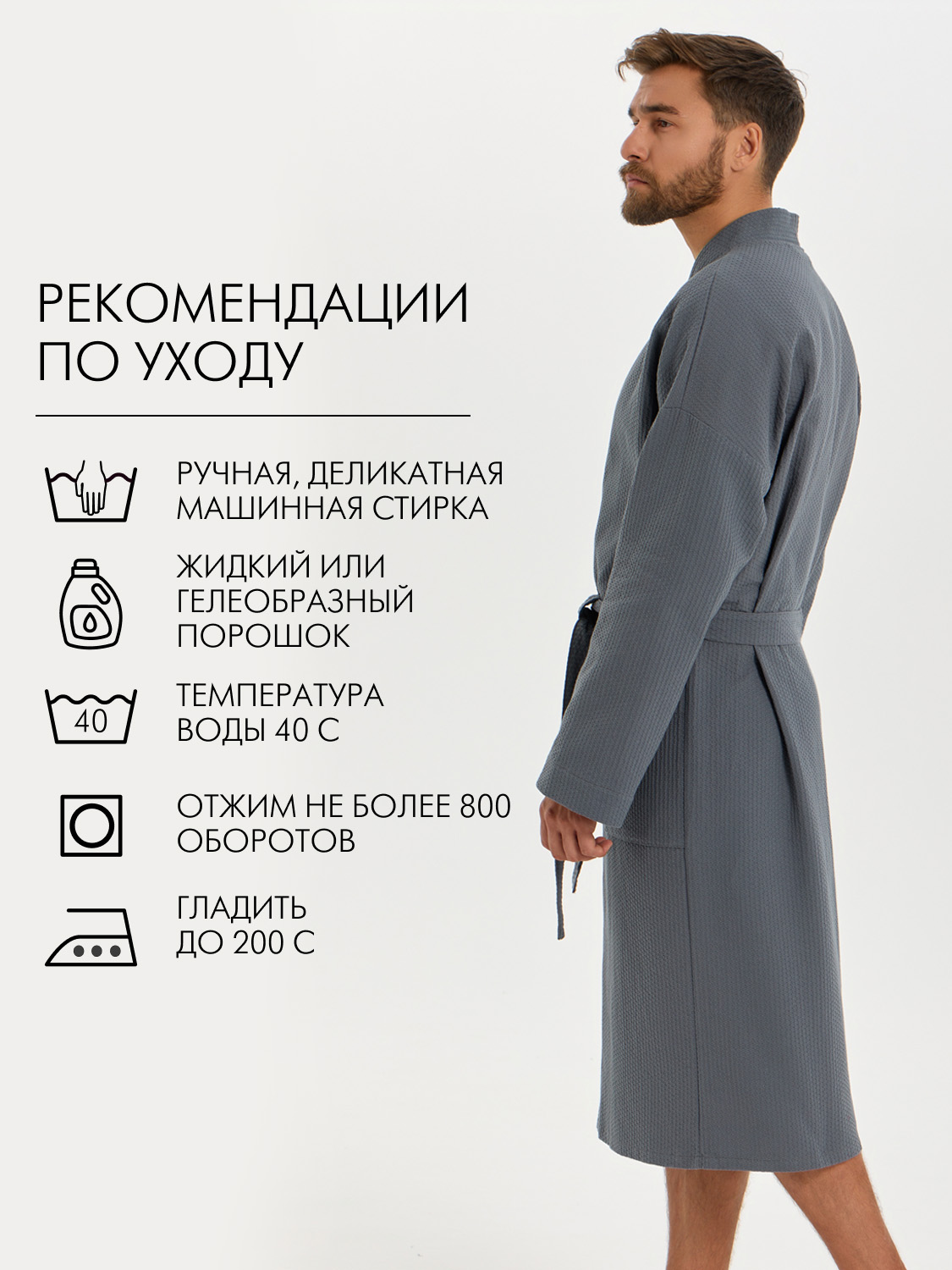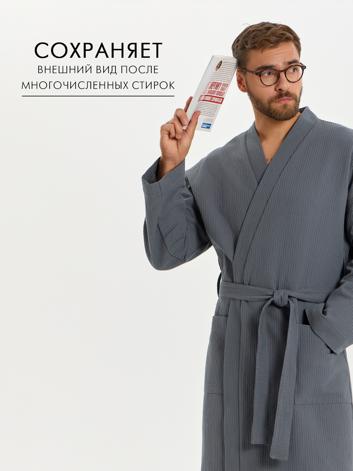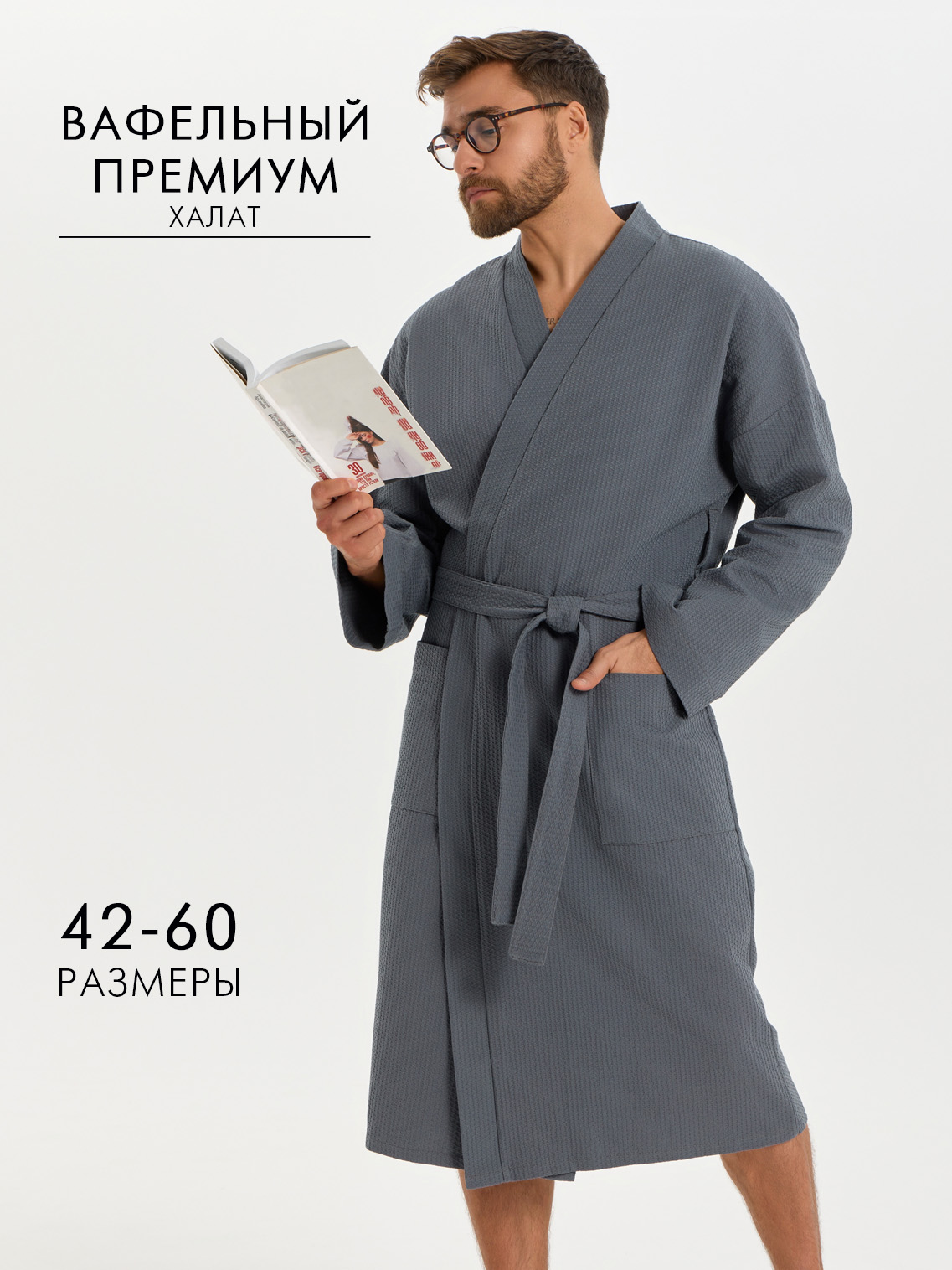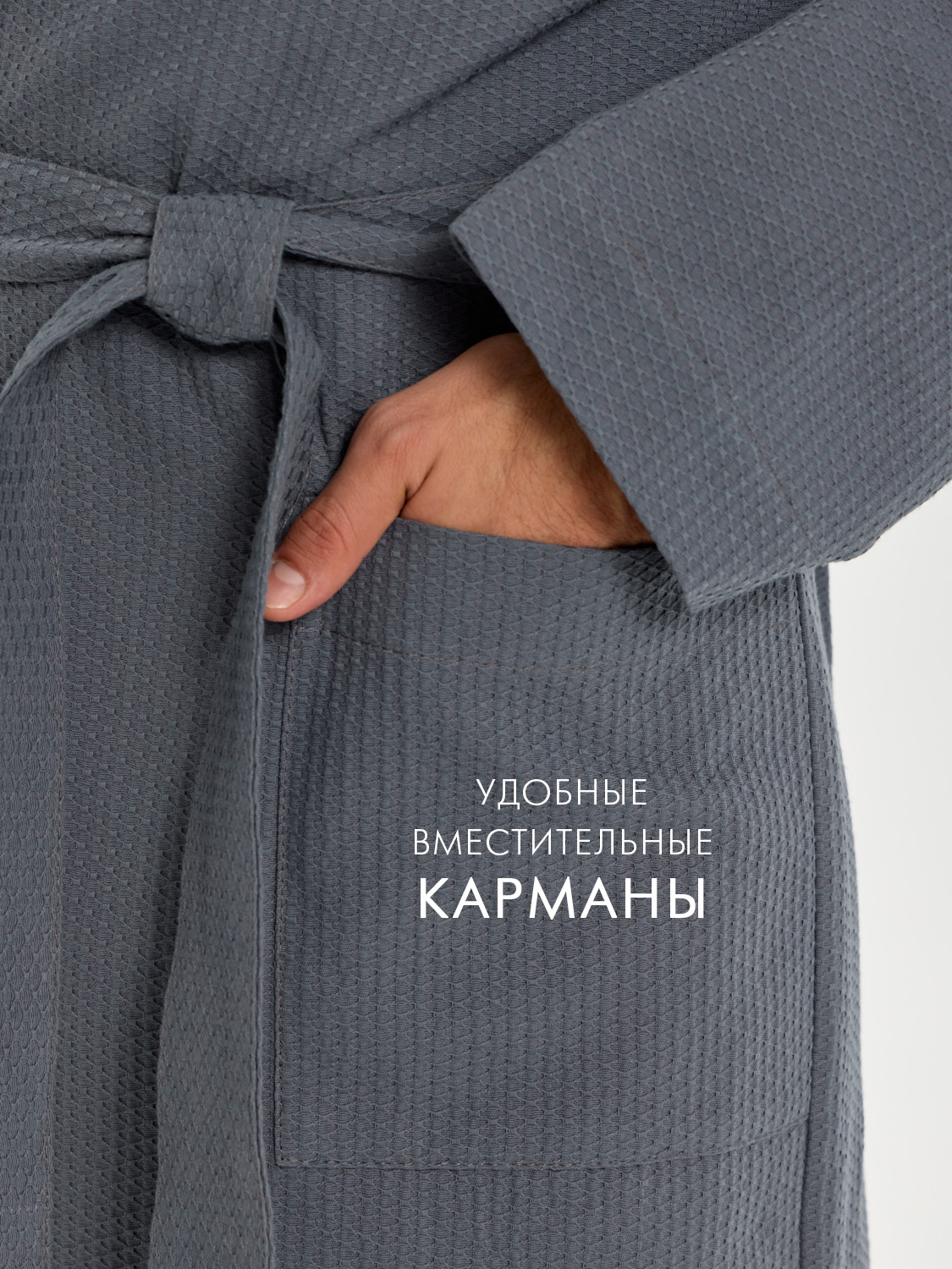 Теги: Вафельный удлиненный халат Кимоно унисекс "Ромбы" темно-серый