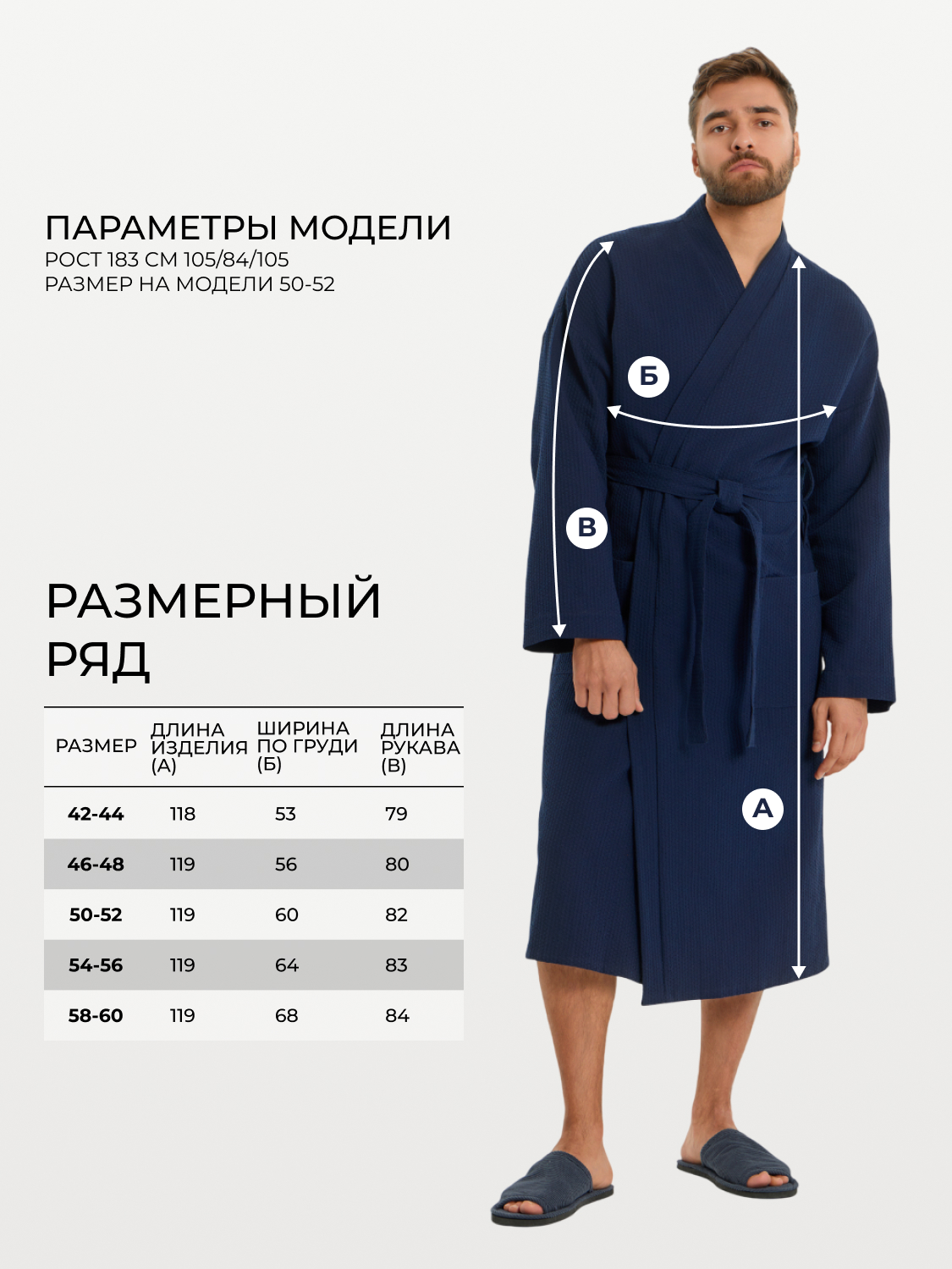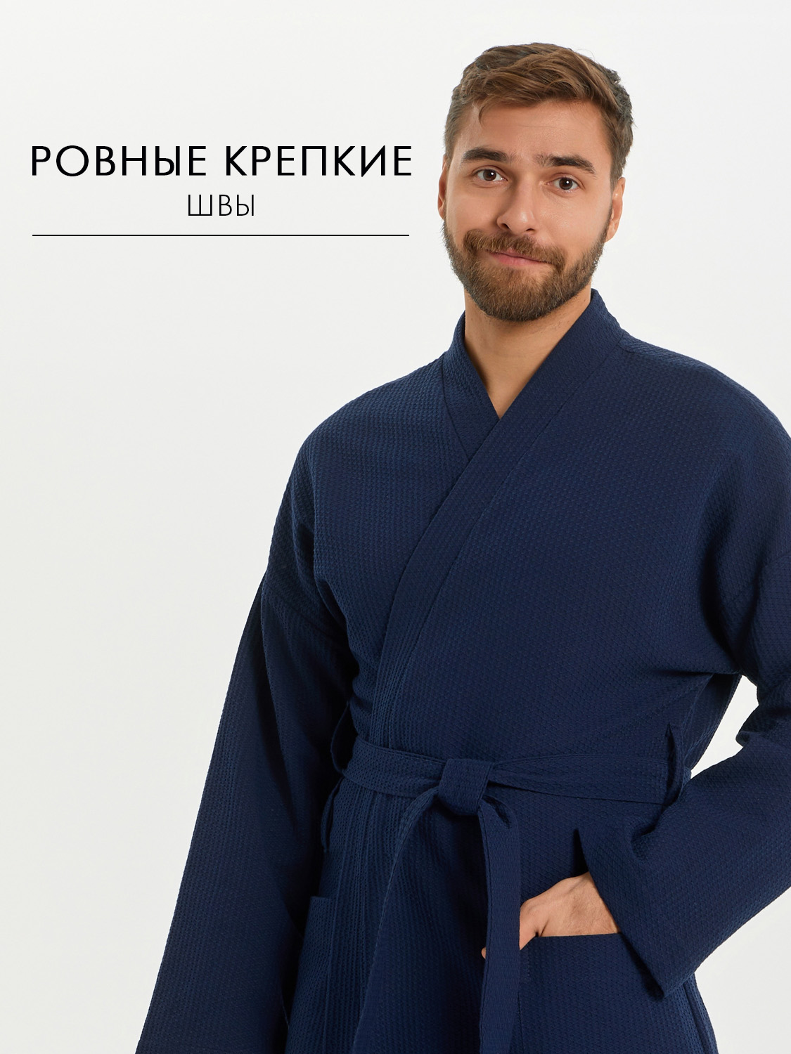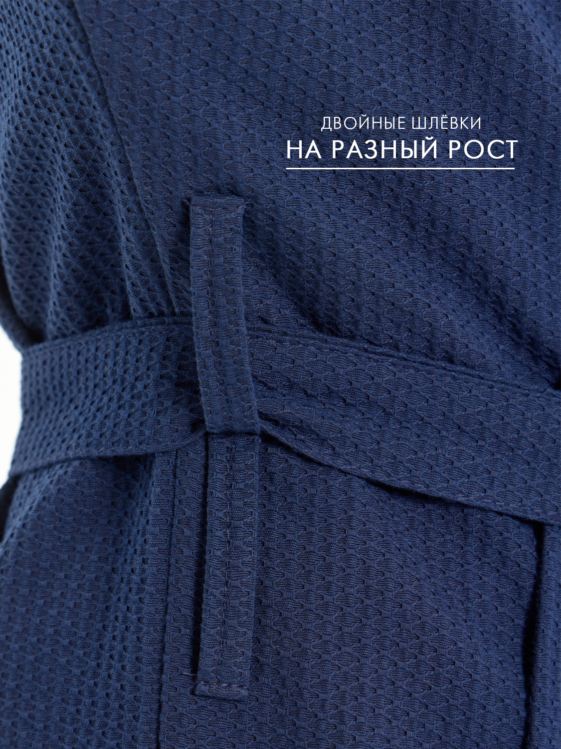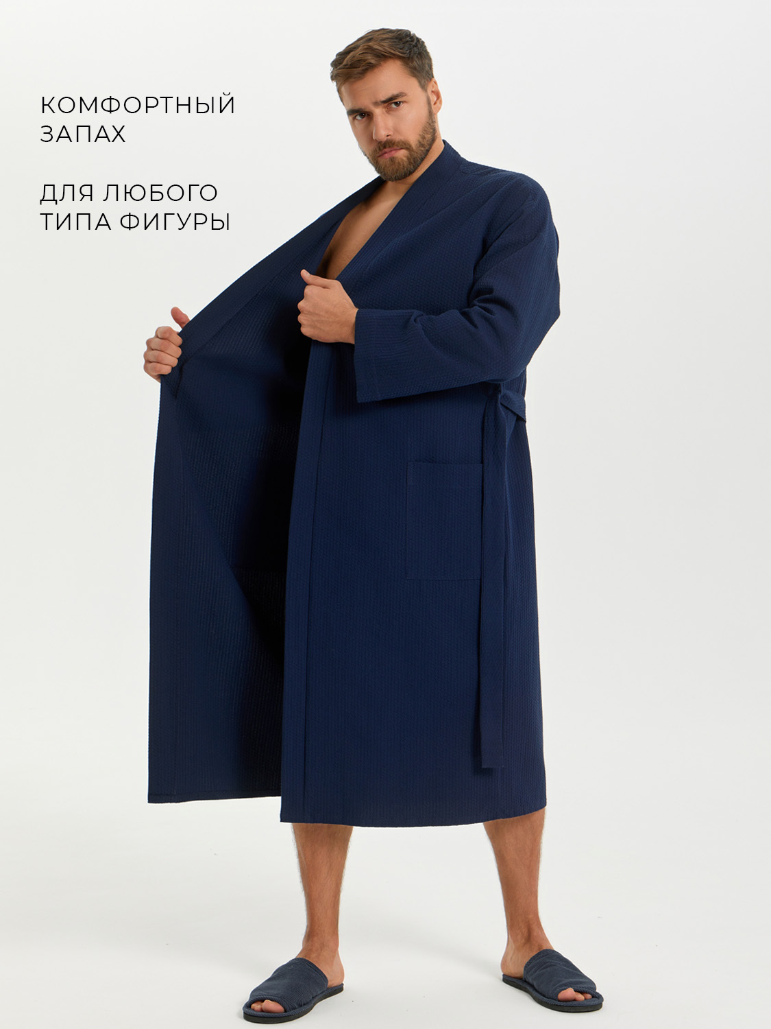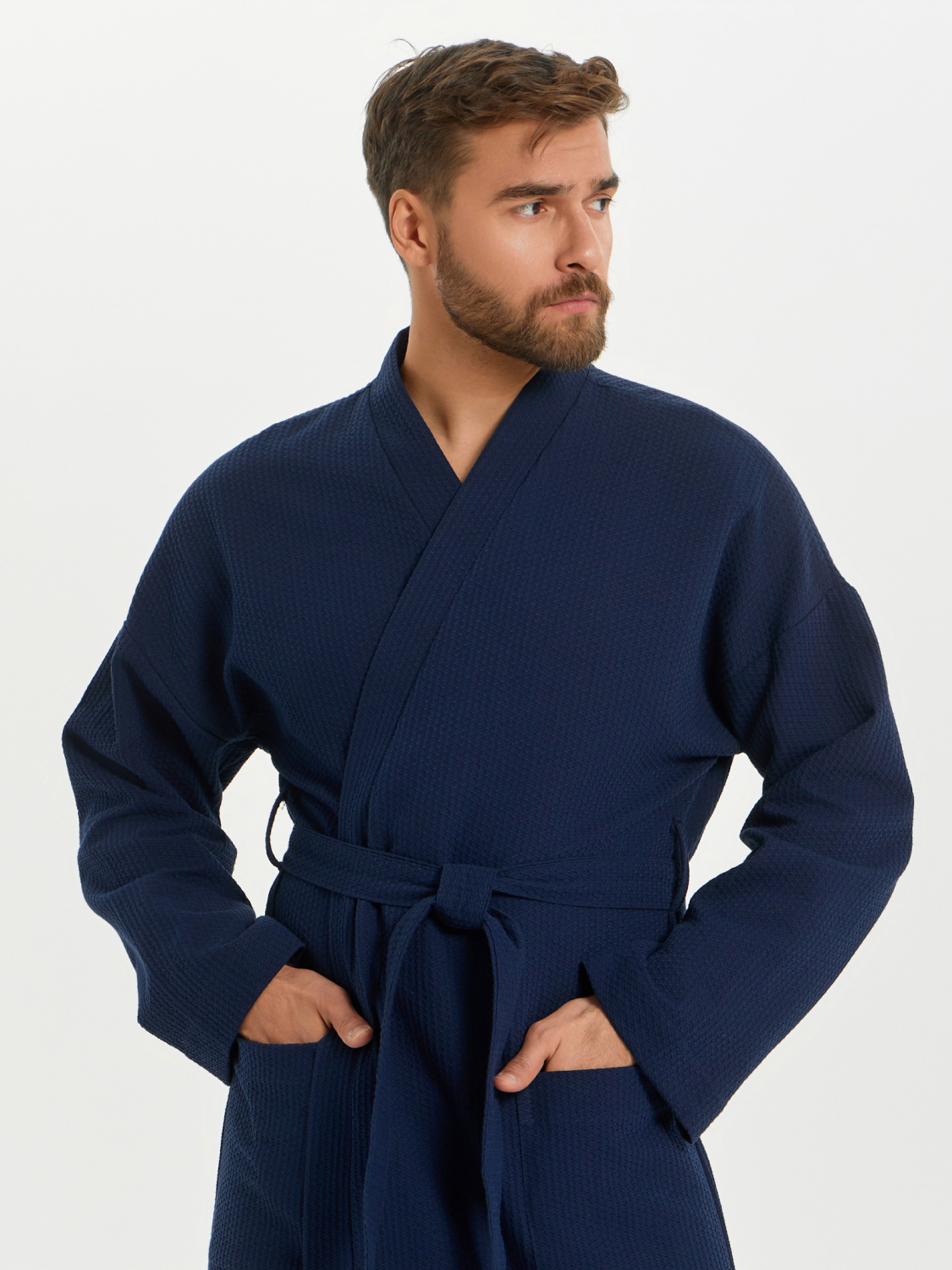 Теги: Вафельный удлиненный халат Кимоно унисекс "Ромбы" темно-синий