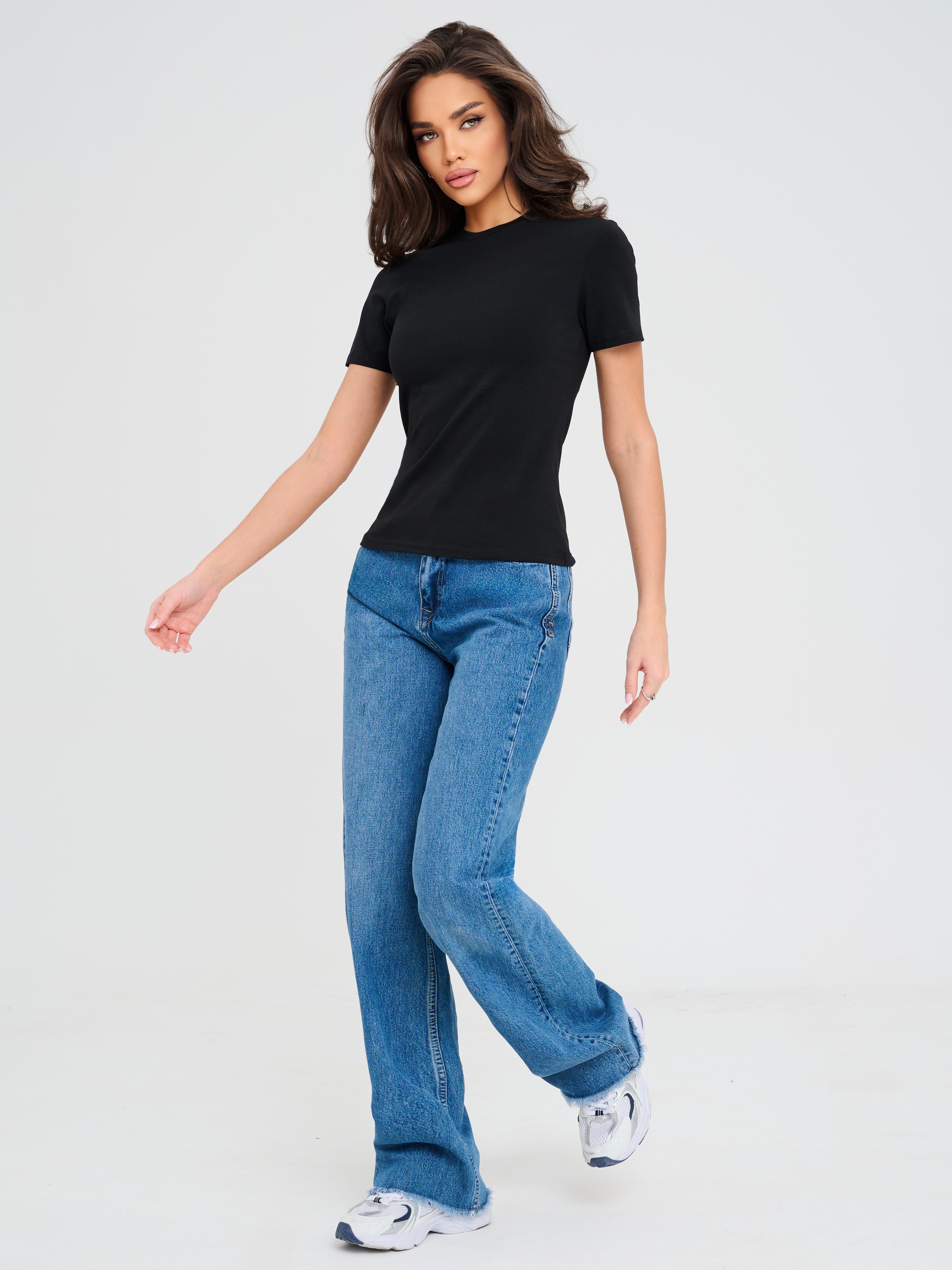 Теги: Трикотажная женская футболка SKIMS Lingeamo черная