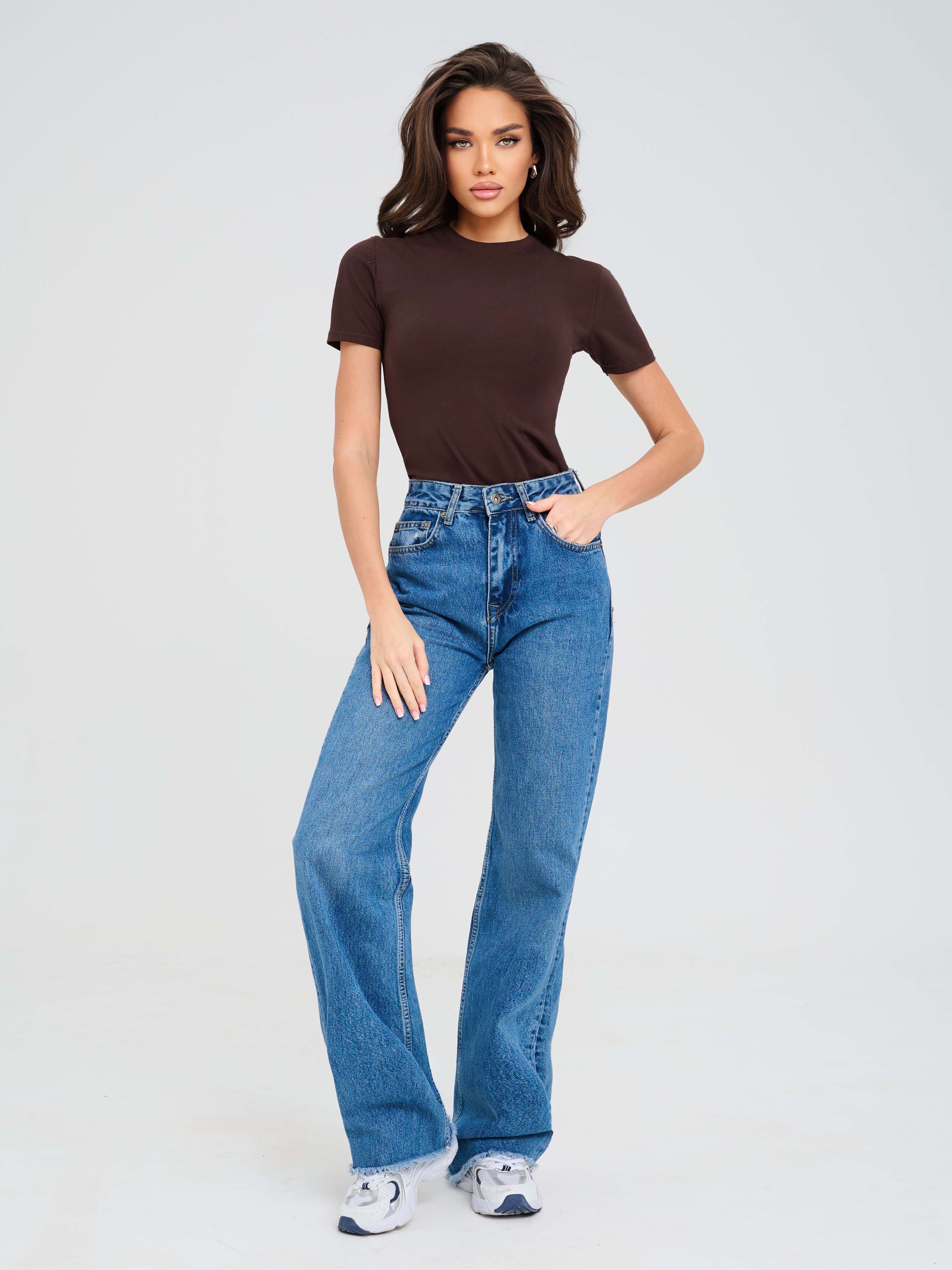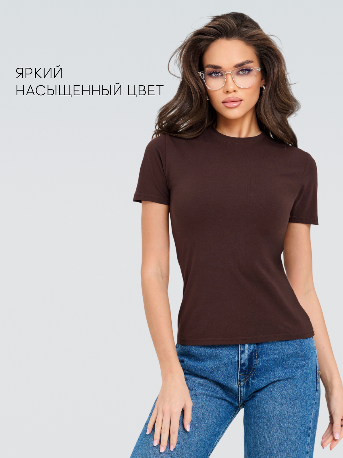 Теги: Трикотажная женская футболка SKIMS Lingeamo темно-коричневая