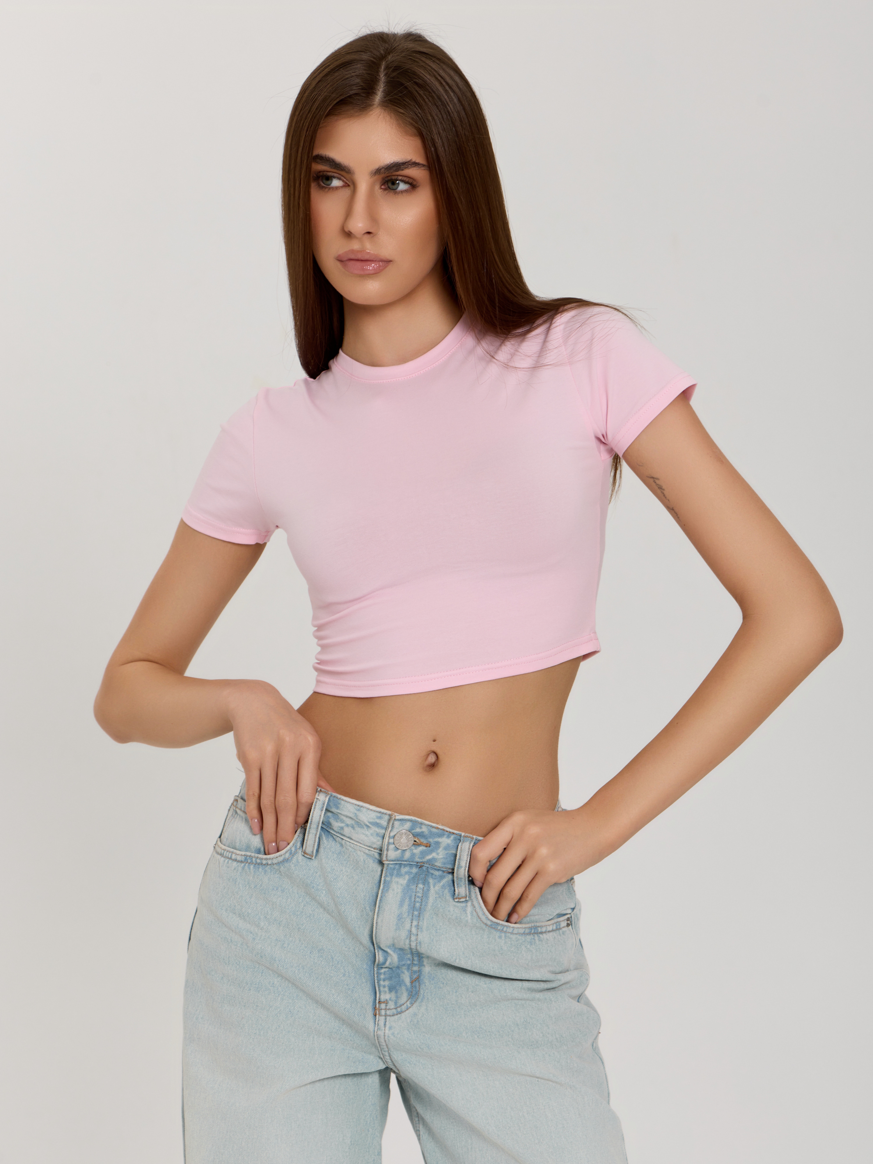 Трикотажный женский кроп-топ SKIMS Lingeamo светло-розовый ВФ-22 (8)