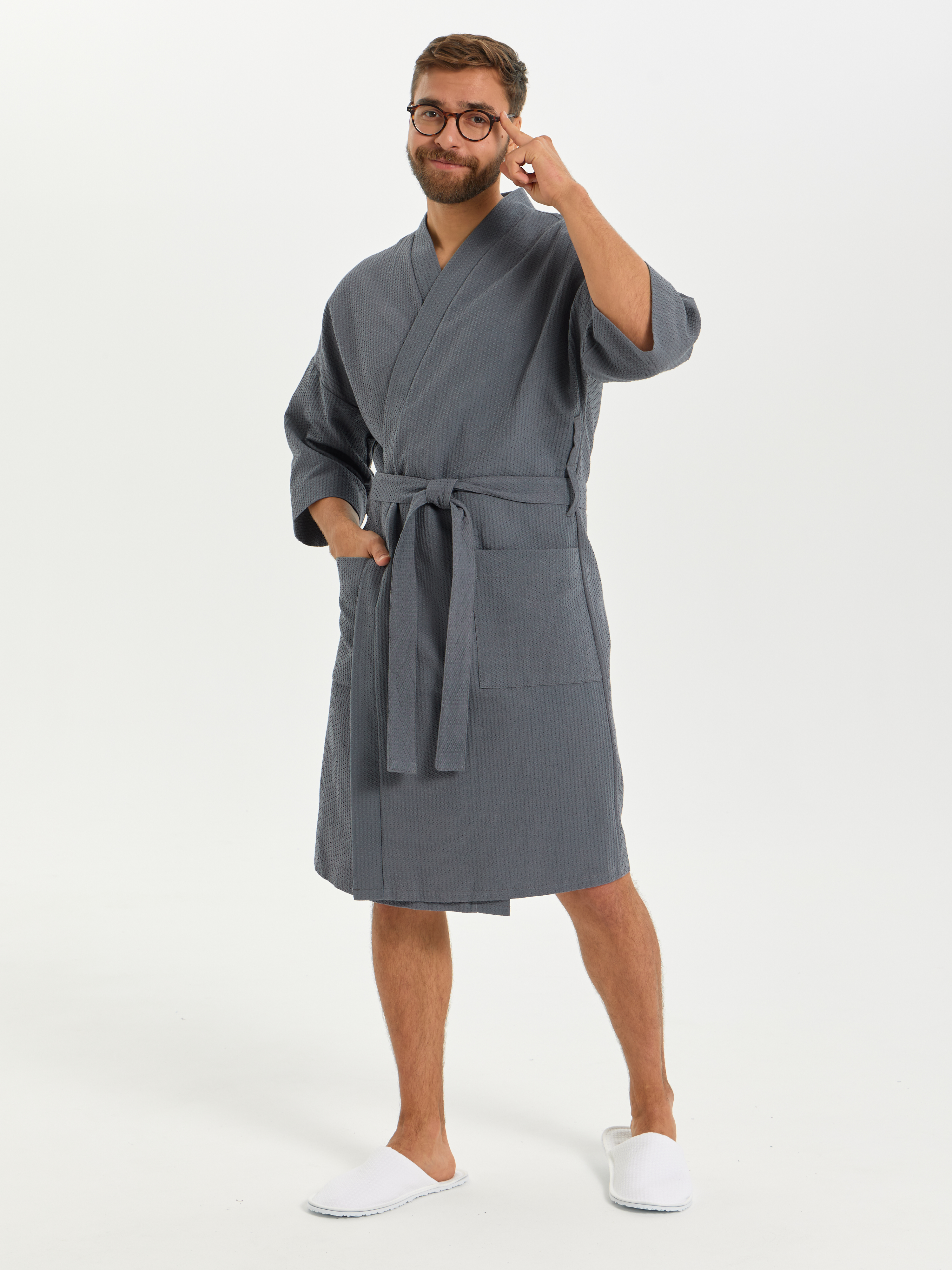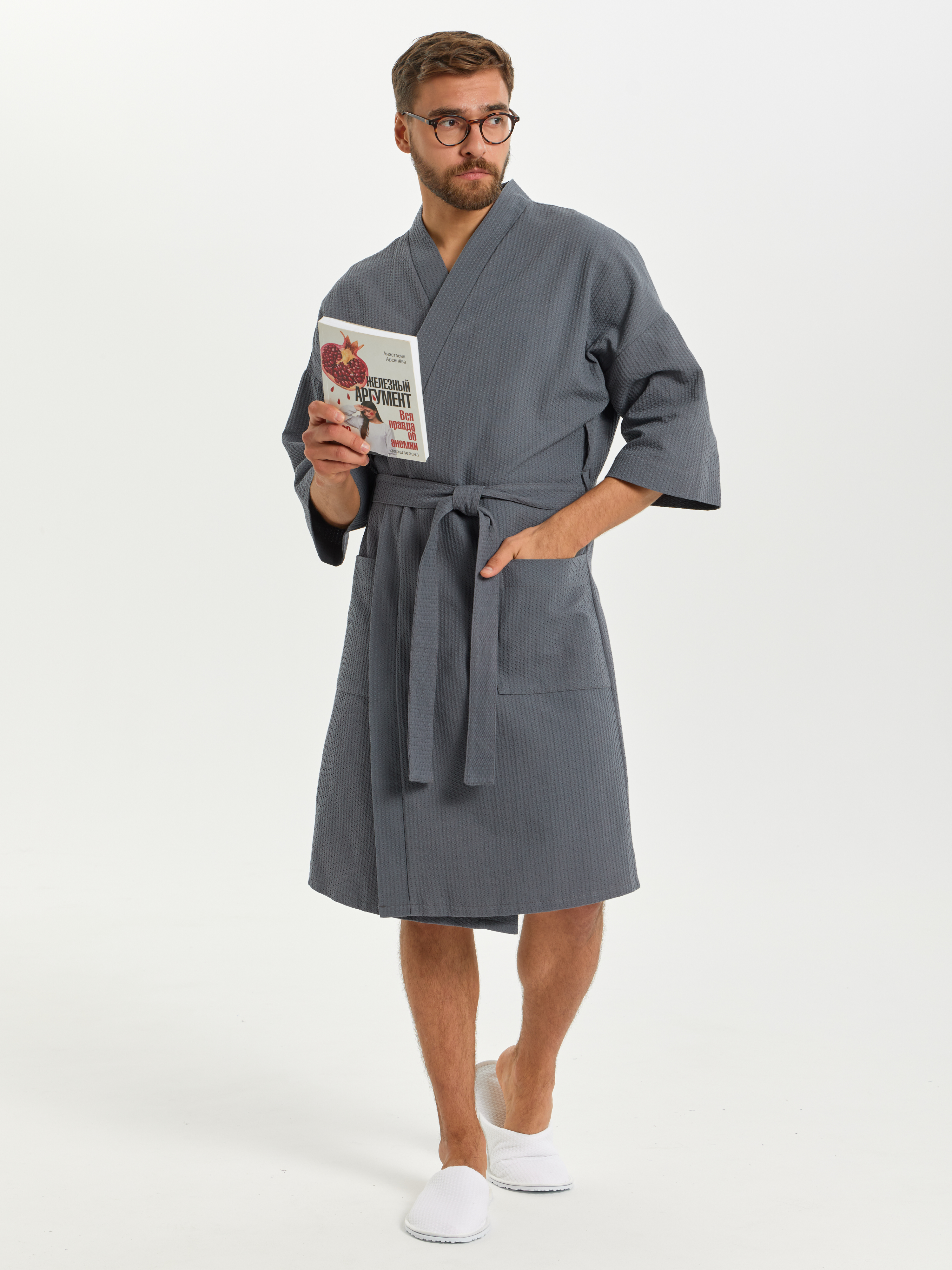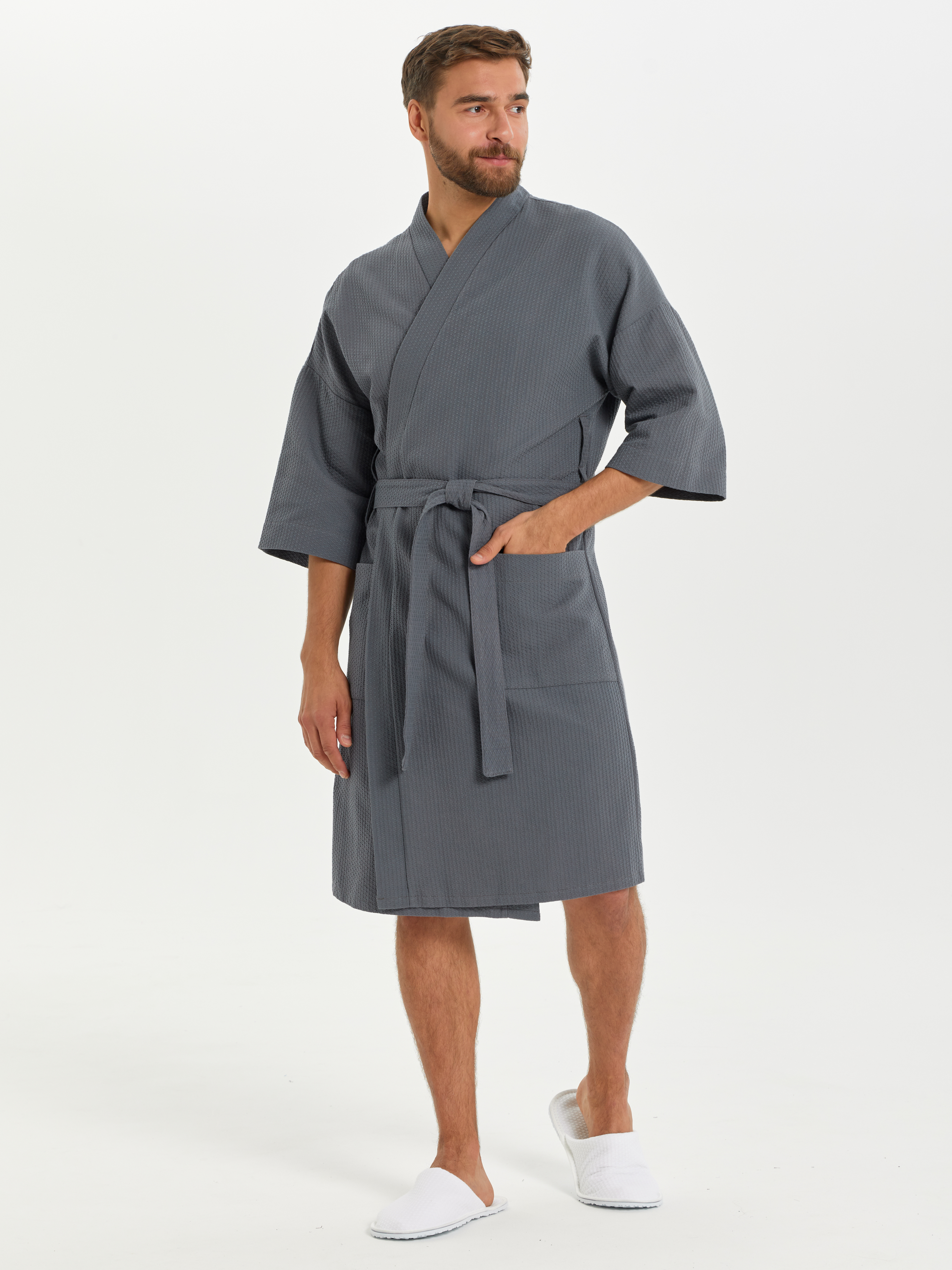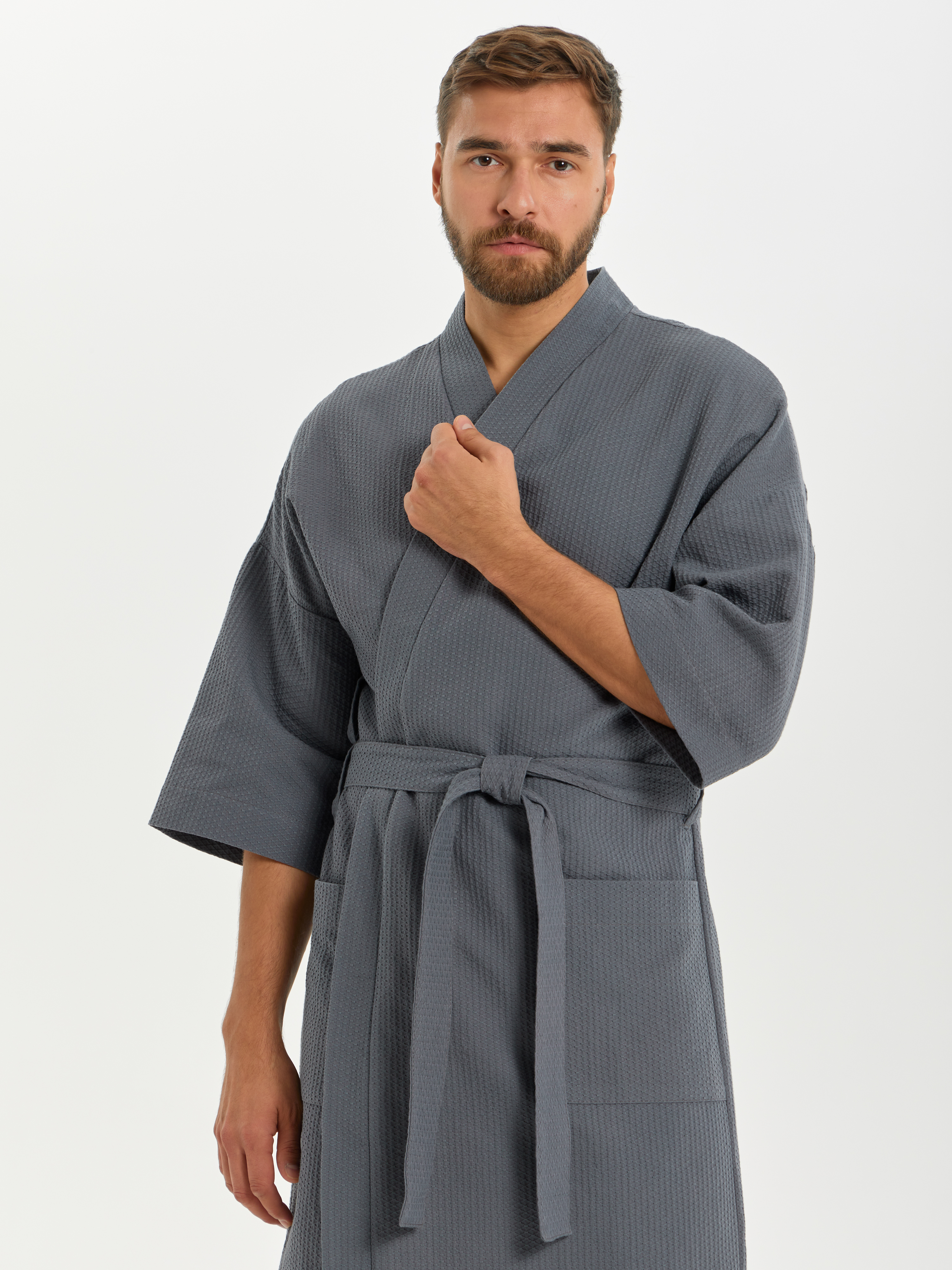Теги: Вафельный халат Кимоно унисекс "Ромбы" темно-серый