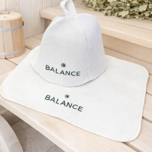 Вышивка на банной шапке и коврике
