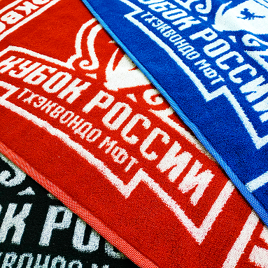 Пестротканые полотенца для кубка России по тхэквандо