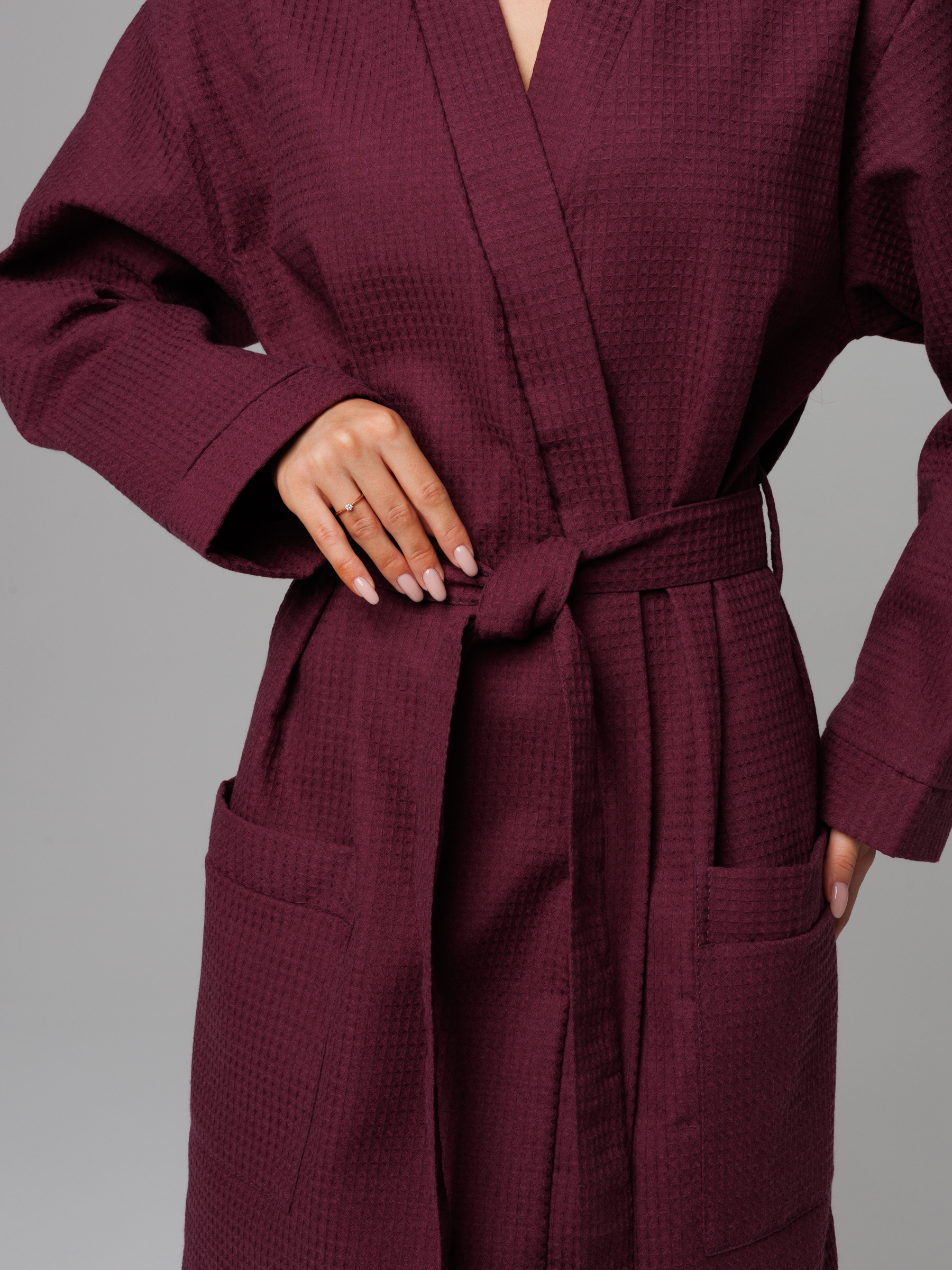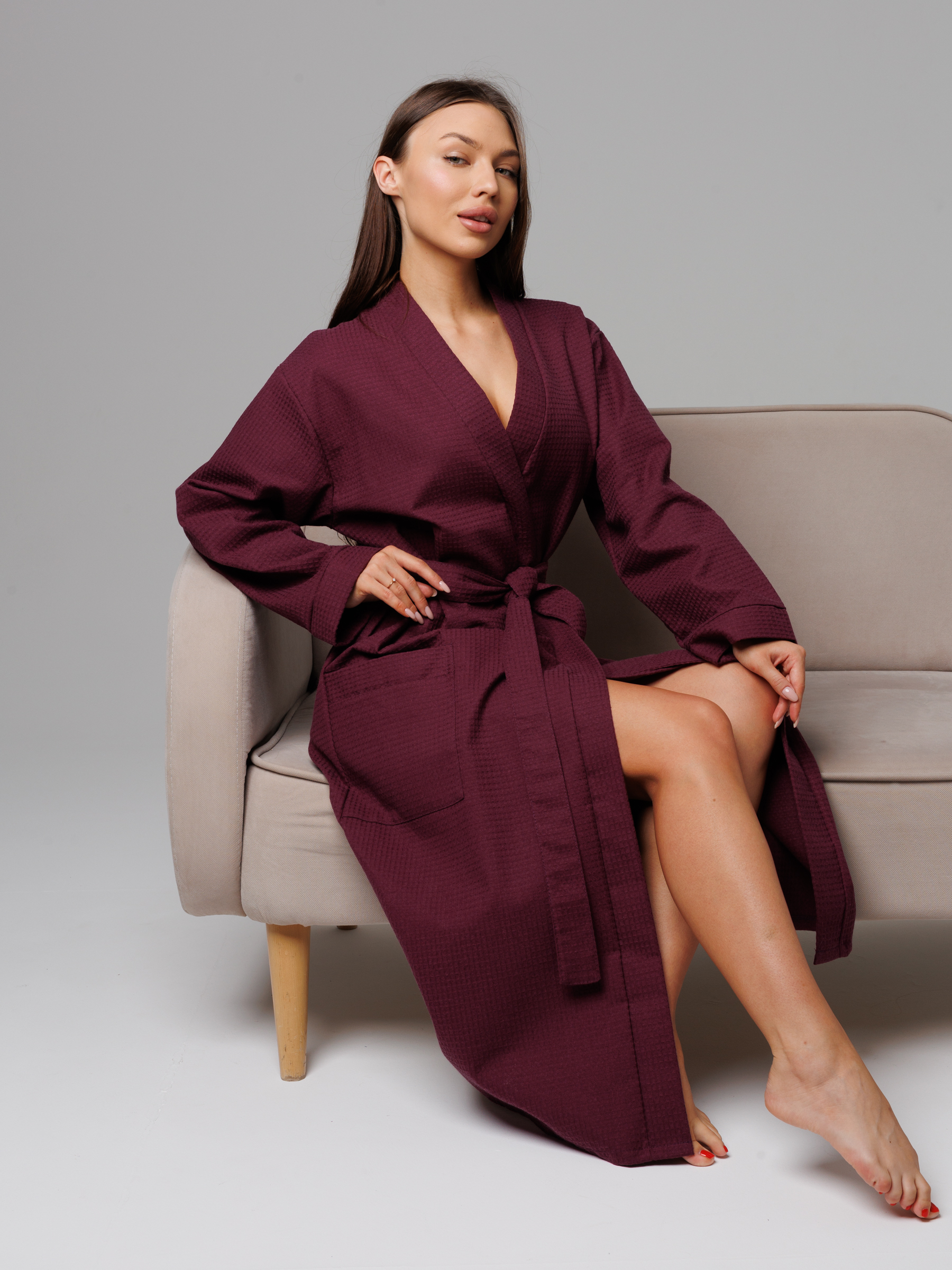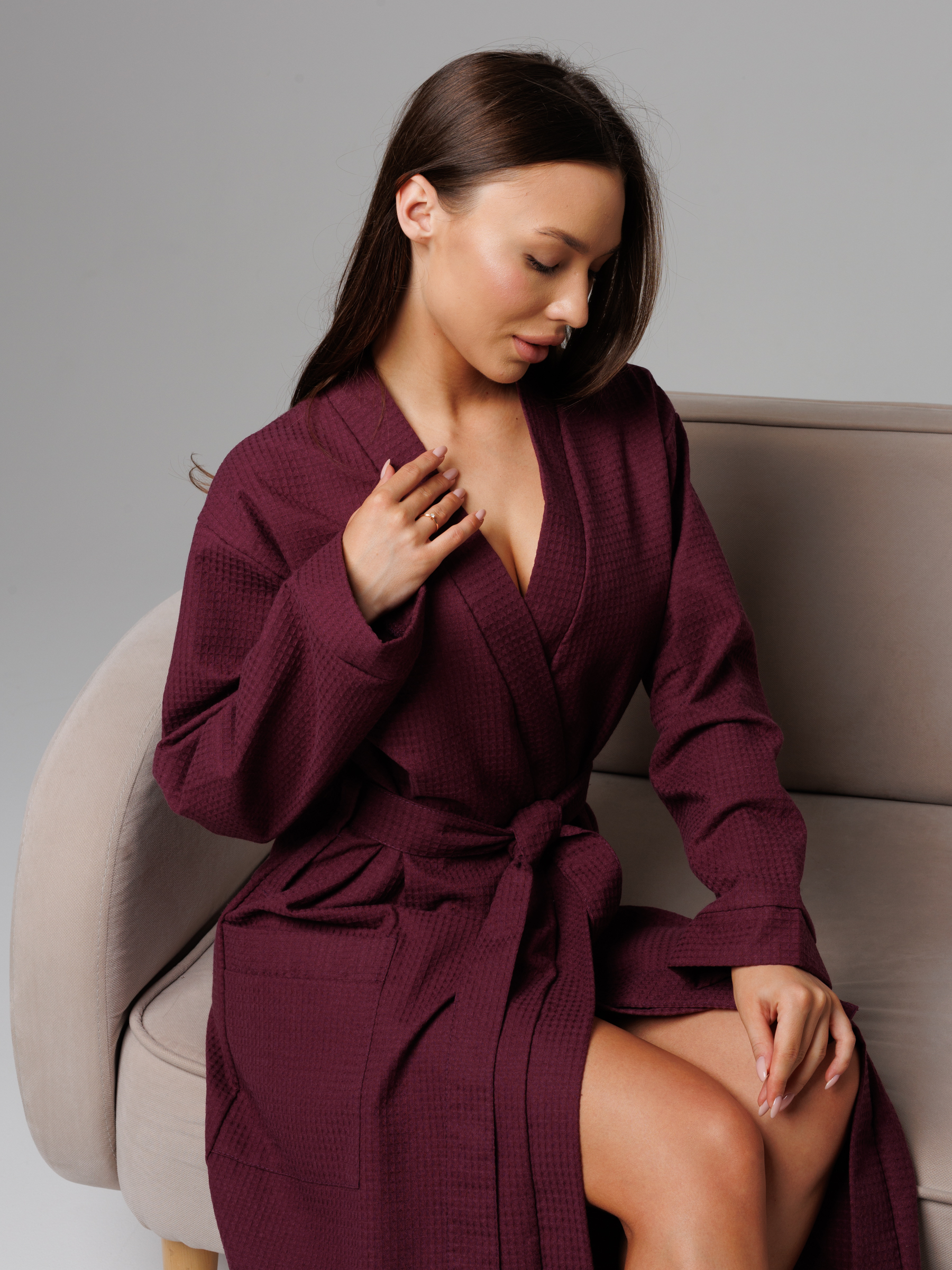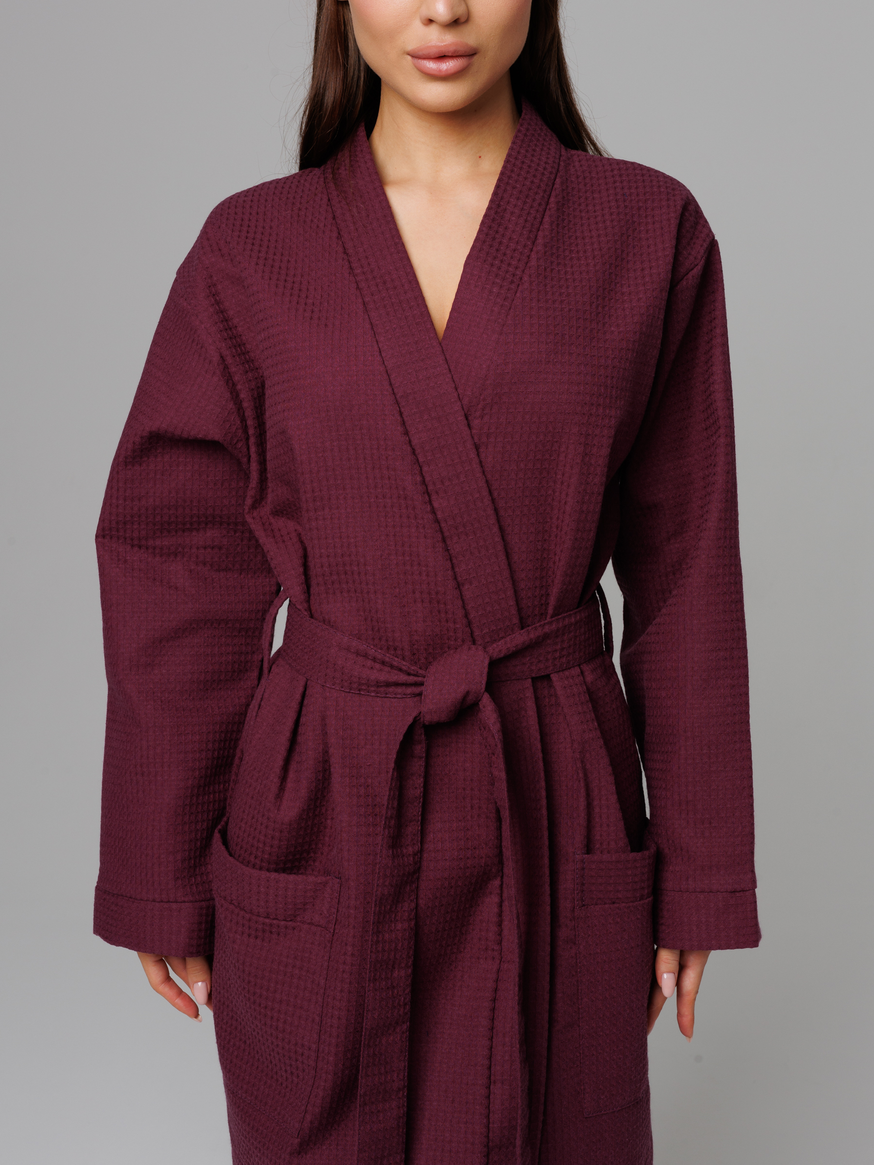 Женский вафельный халат с планкой сухая роза В-02 (29)