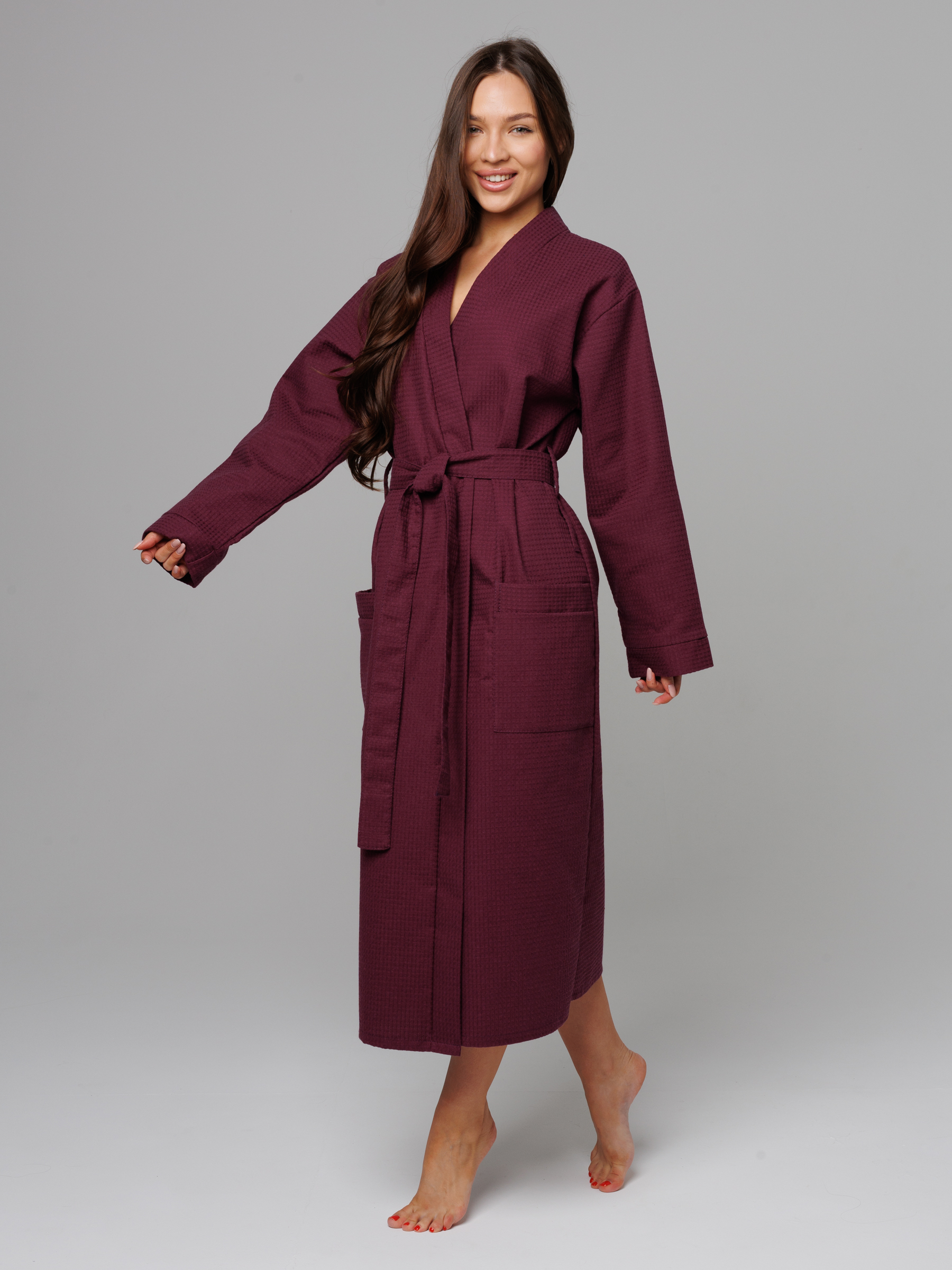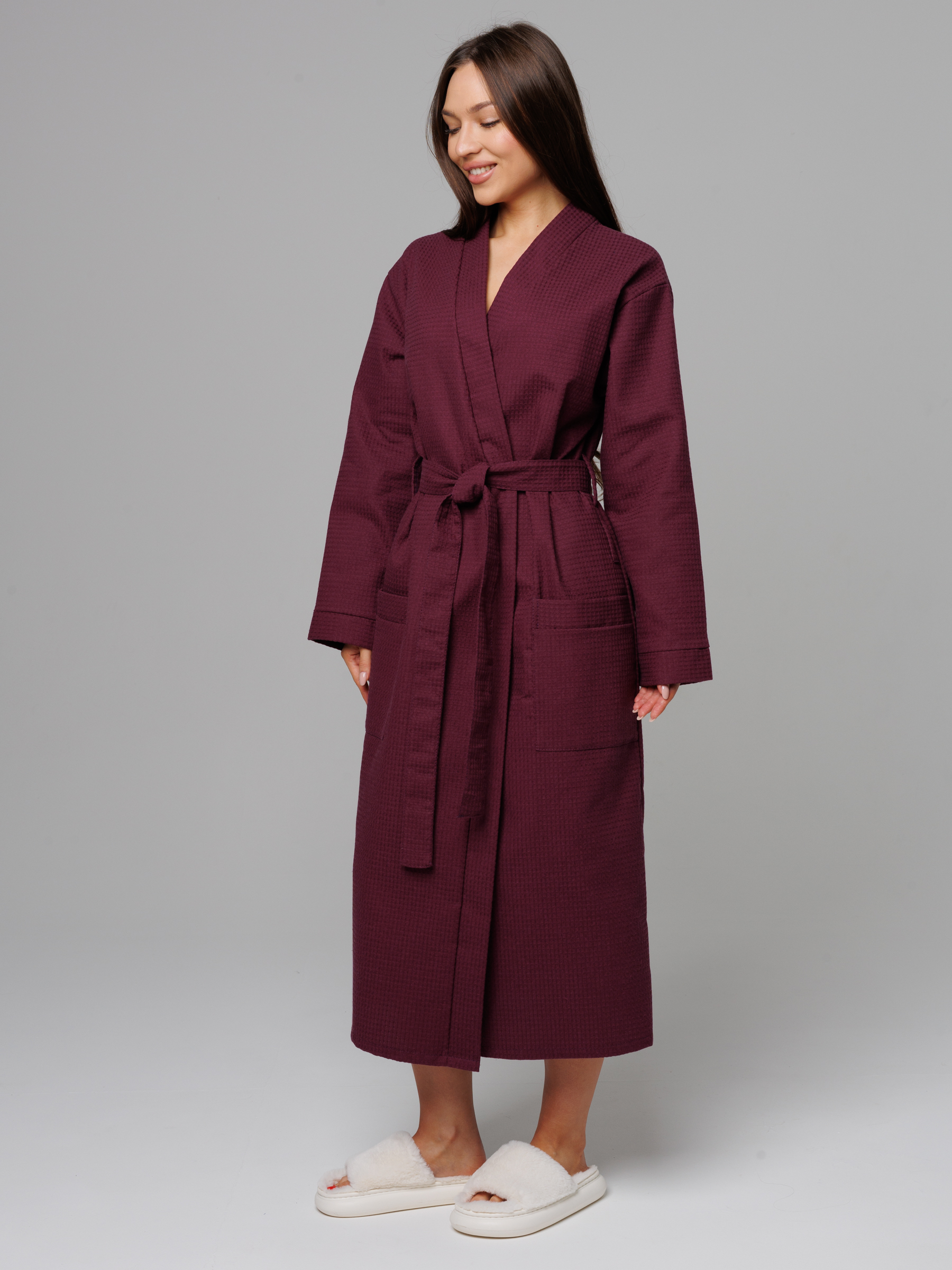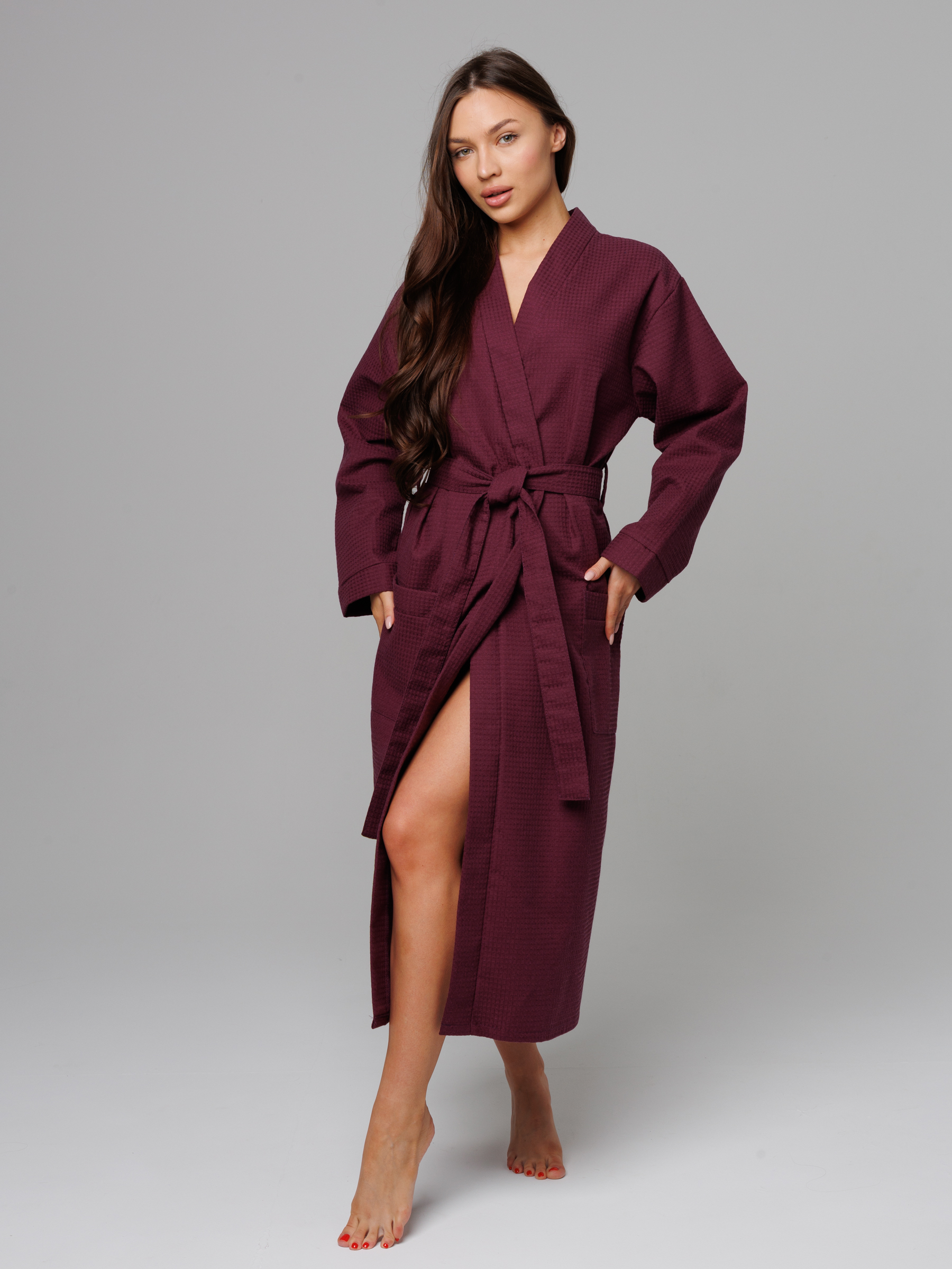 Женский вафельный халат с планкой сухая роза В-02 (29)
