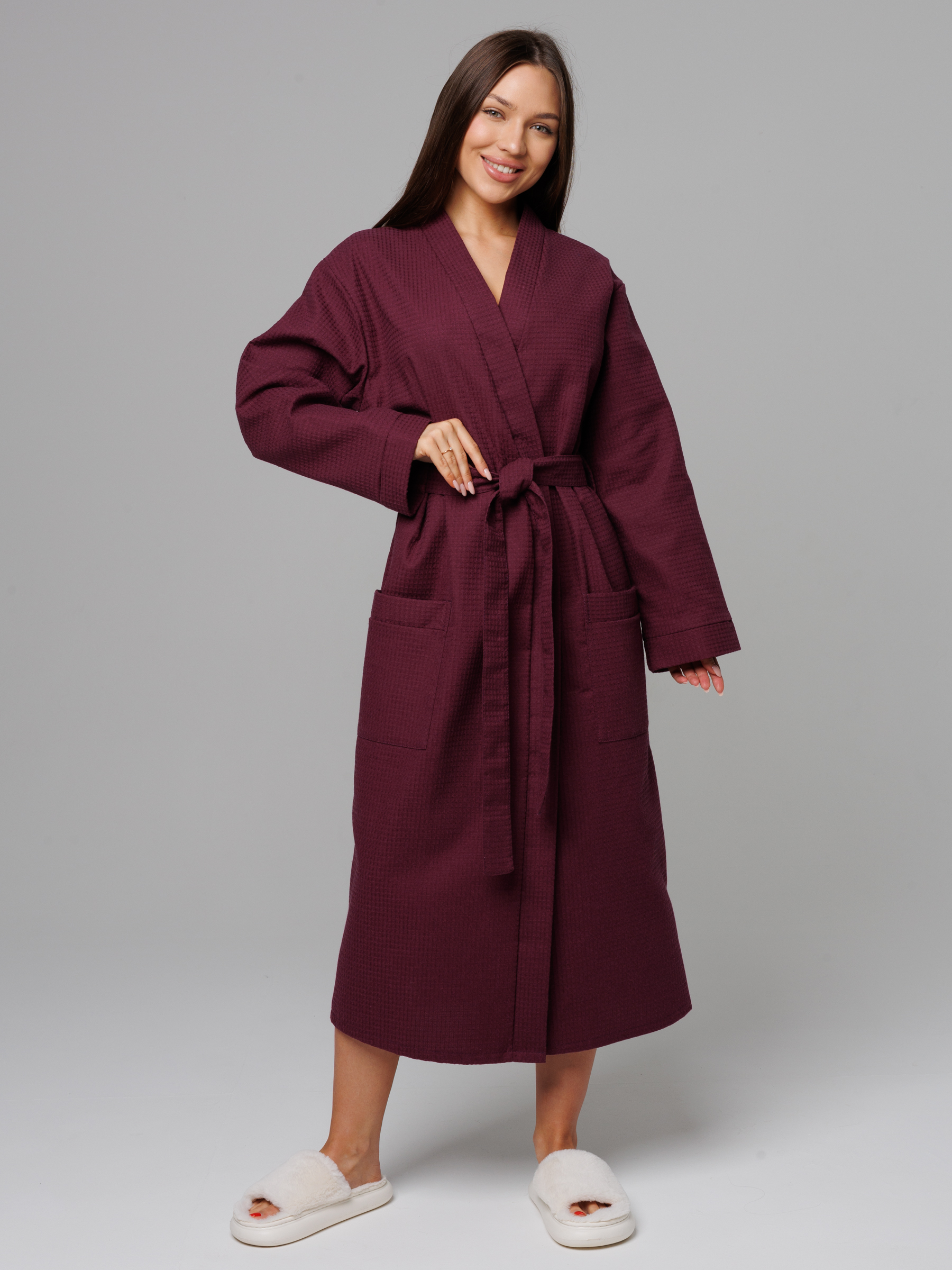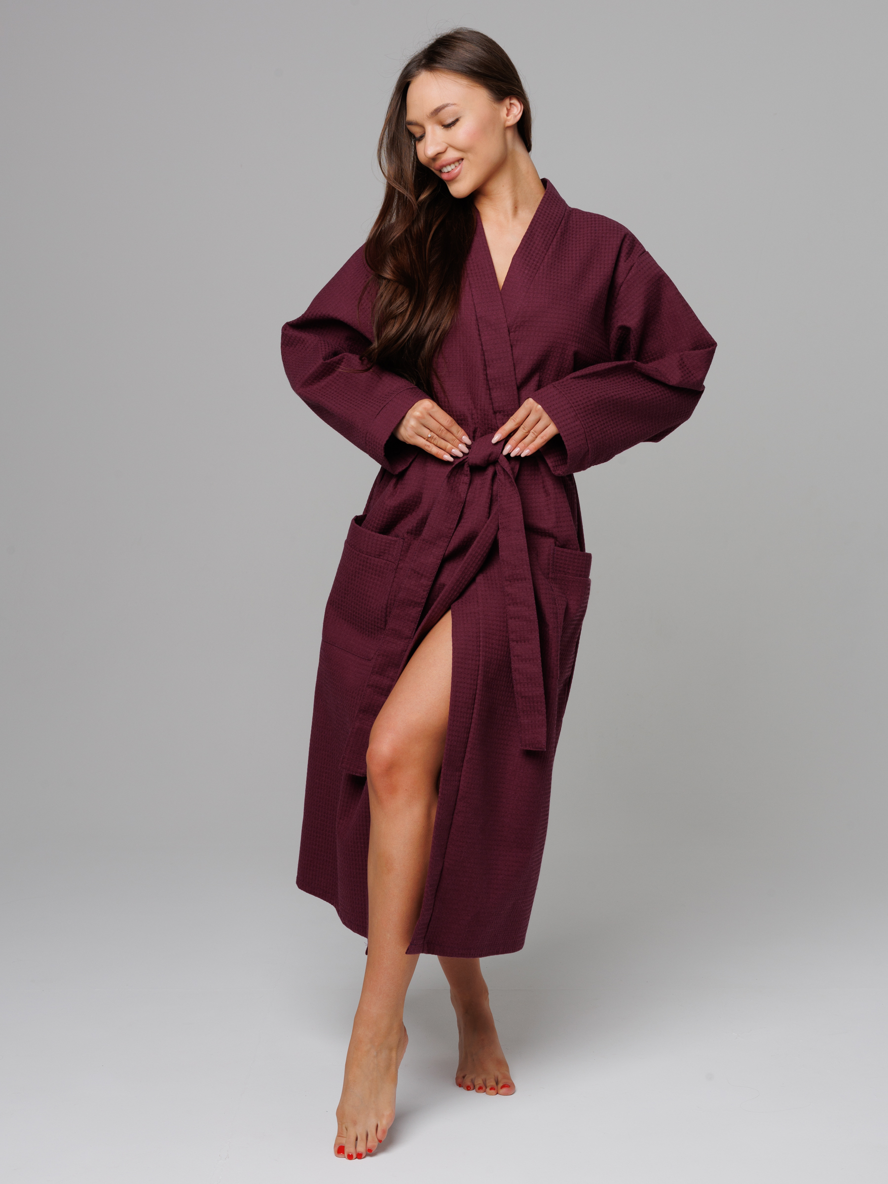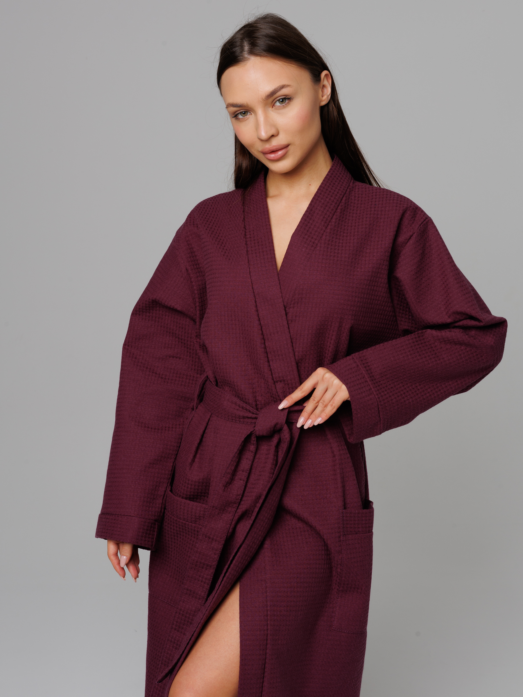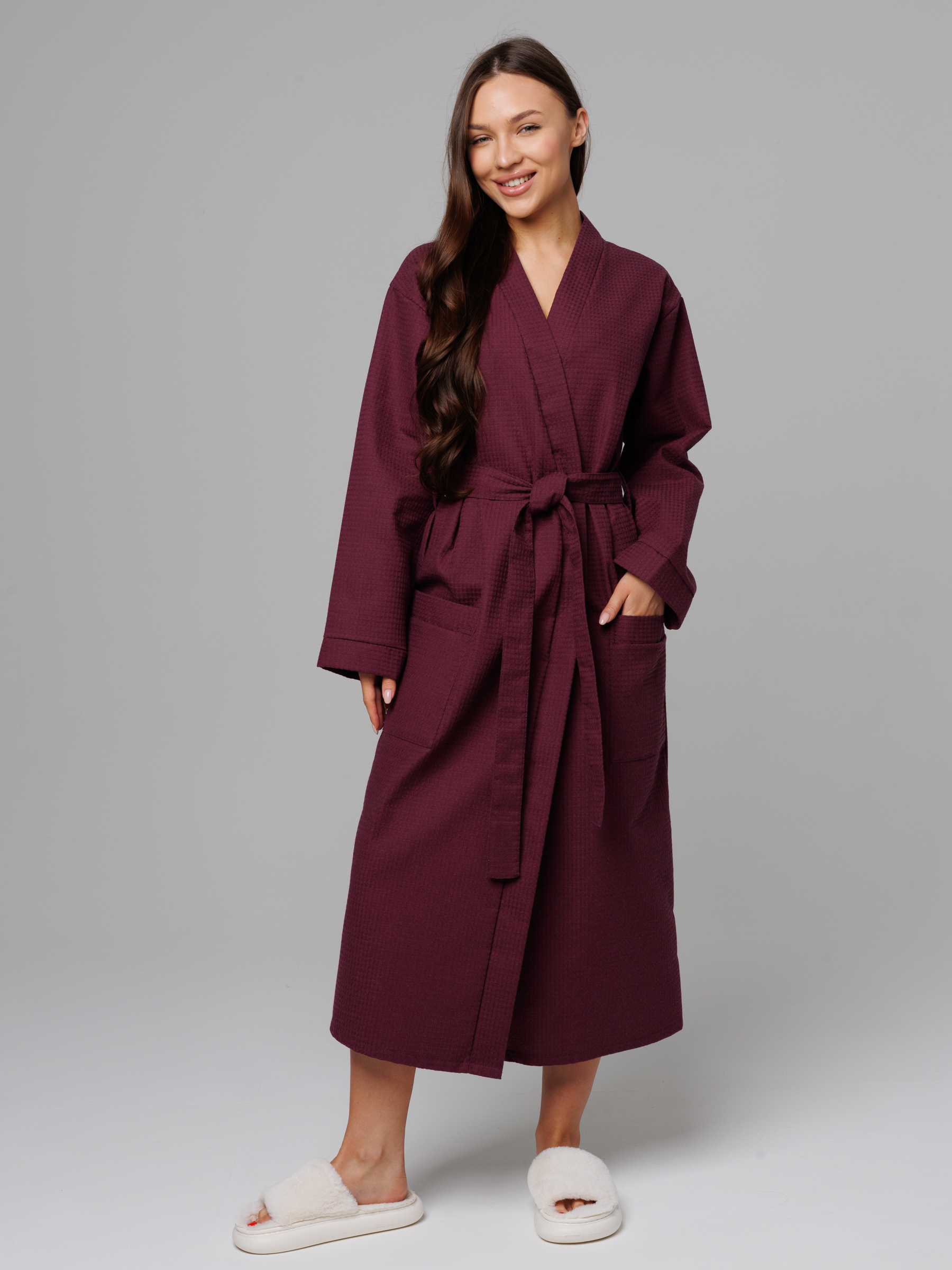 Женский вафельный халат с планкой сухая роза В-02 (29)