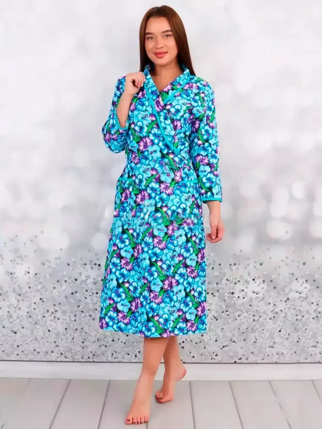 Теги: Женский фланелевый халат на запах рукав 3/4