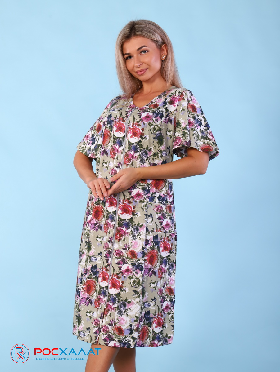 Теги: Трикотажный халат на молнии розовые розы